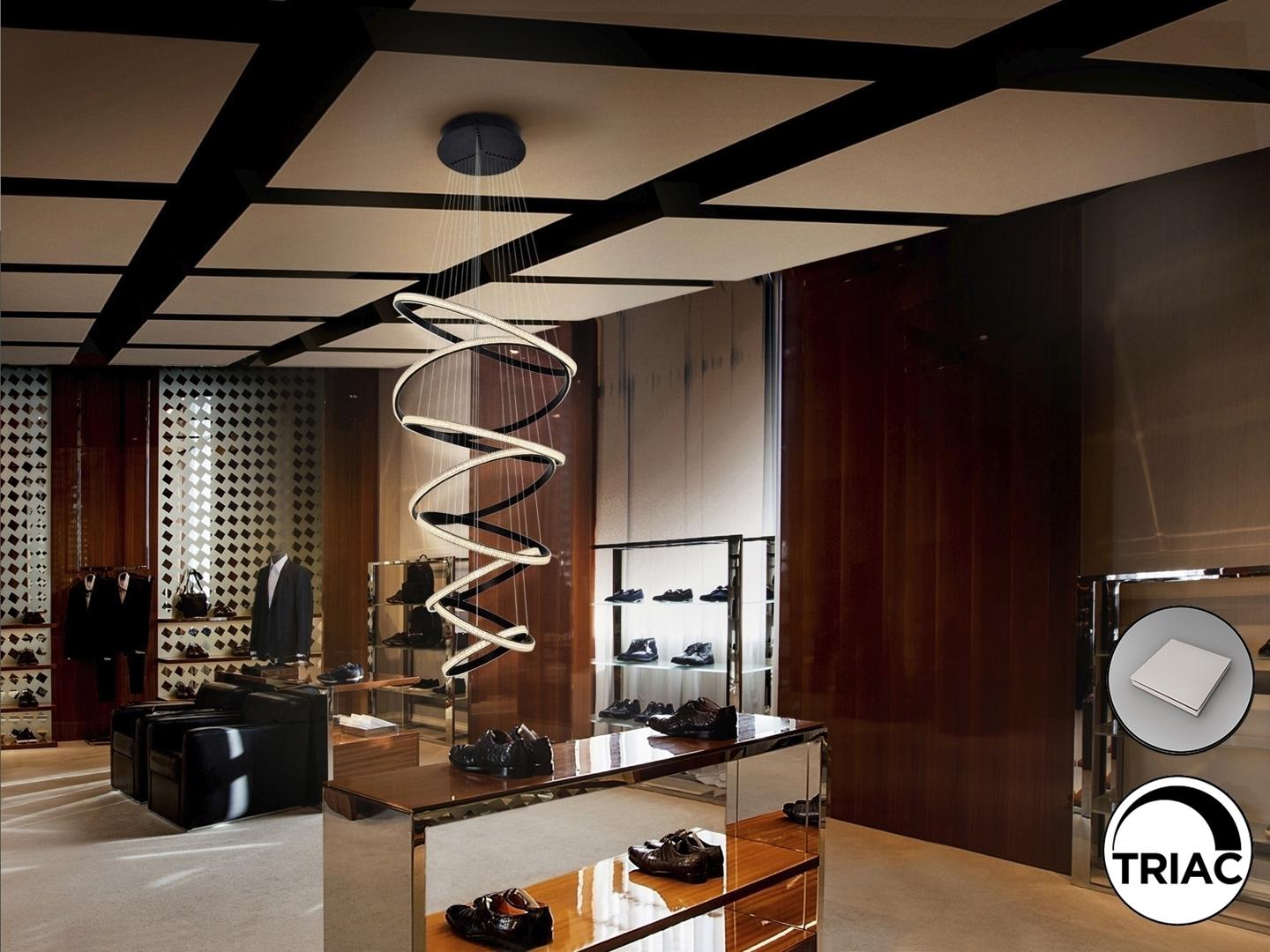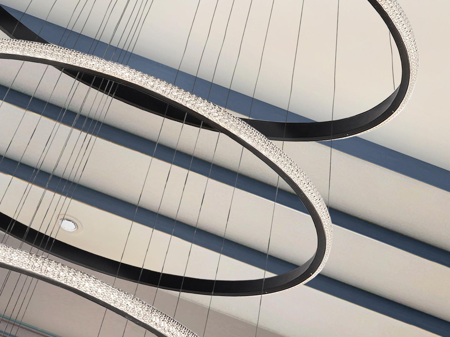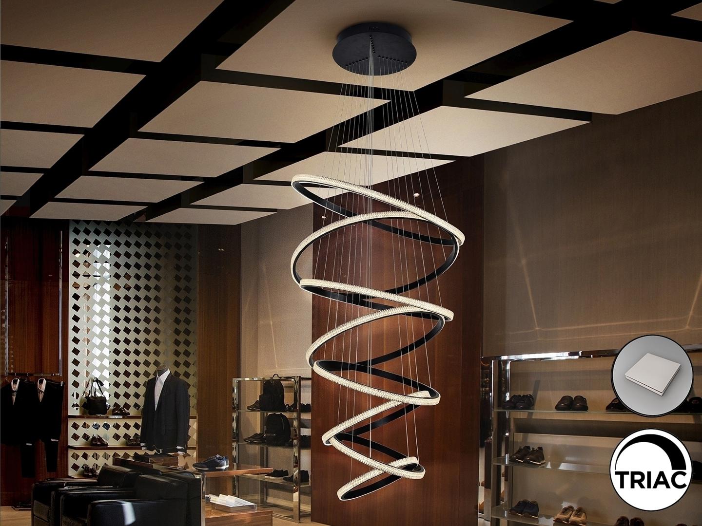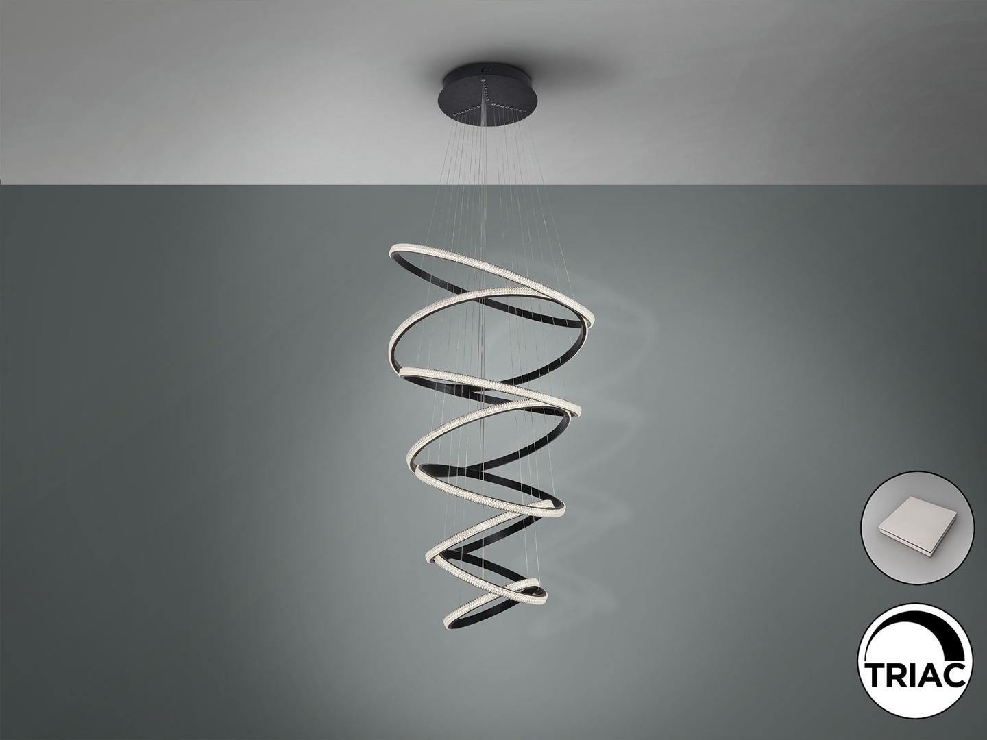 Лампа изготовлена из металла и алюминия, окрашена в черный матовый цвет. Восемь регулируемых по длине колец с рассеивателем из прозрачных акриловых деталей. Светодиод мощностью 162 Вт. 8100 лм. 4.000 К. С РЕГУЛИРОВКОЙ. Драйвер TRIAC и НАБОР DIMMING SET включены. Этот продукт включает в себя светодиодные драйверы с триаком и регулировкой яркости 0–10 В. В комплект входит комплект затемнения с приемником и радиочастотным пультом дистанционного управления. Его также можно использовать с симисторным или настенным диммером 0–10 В.
