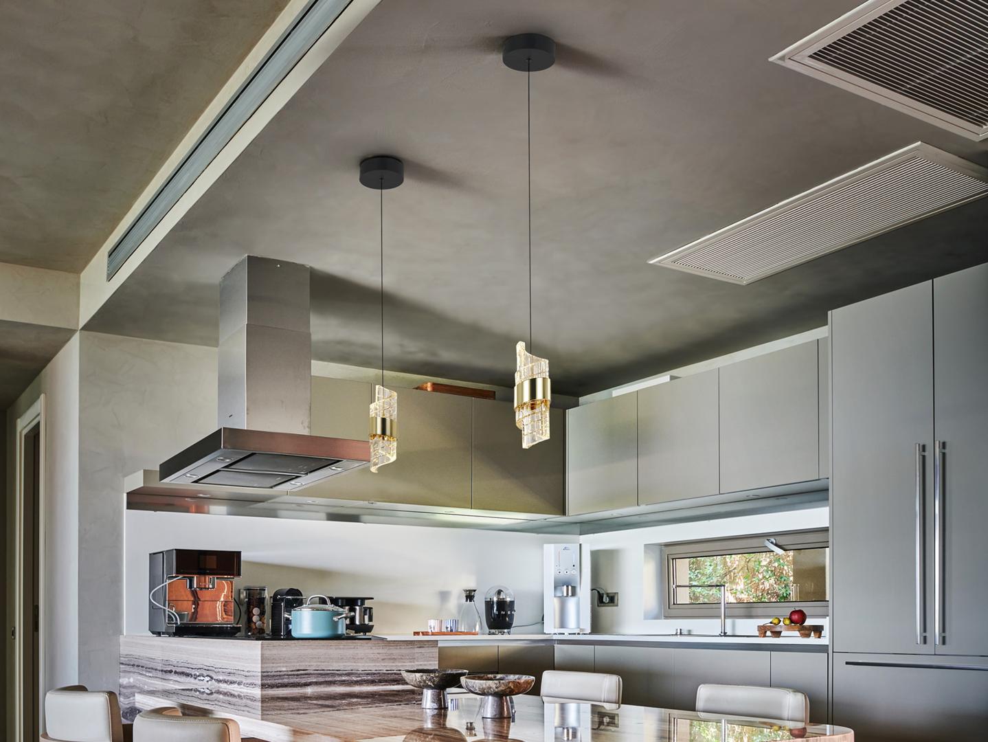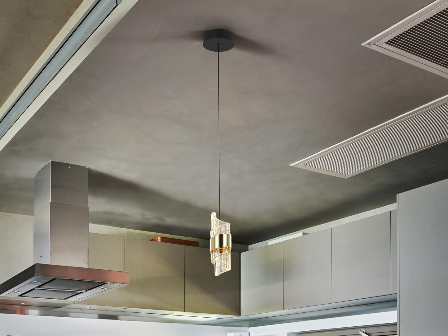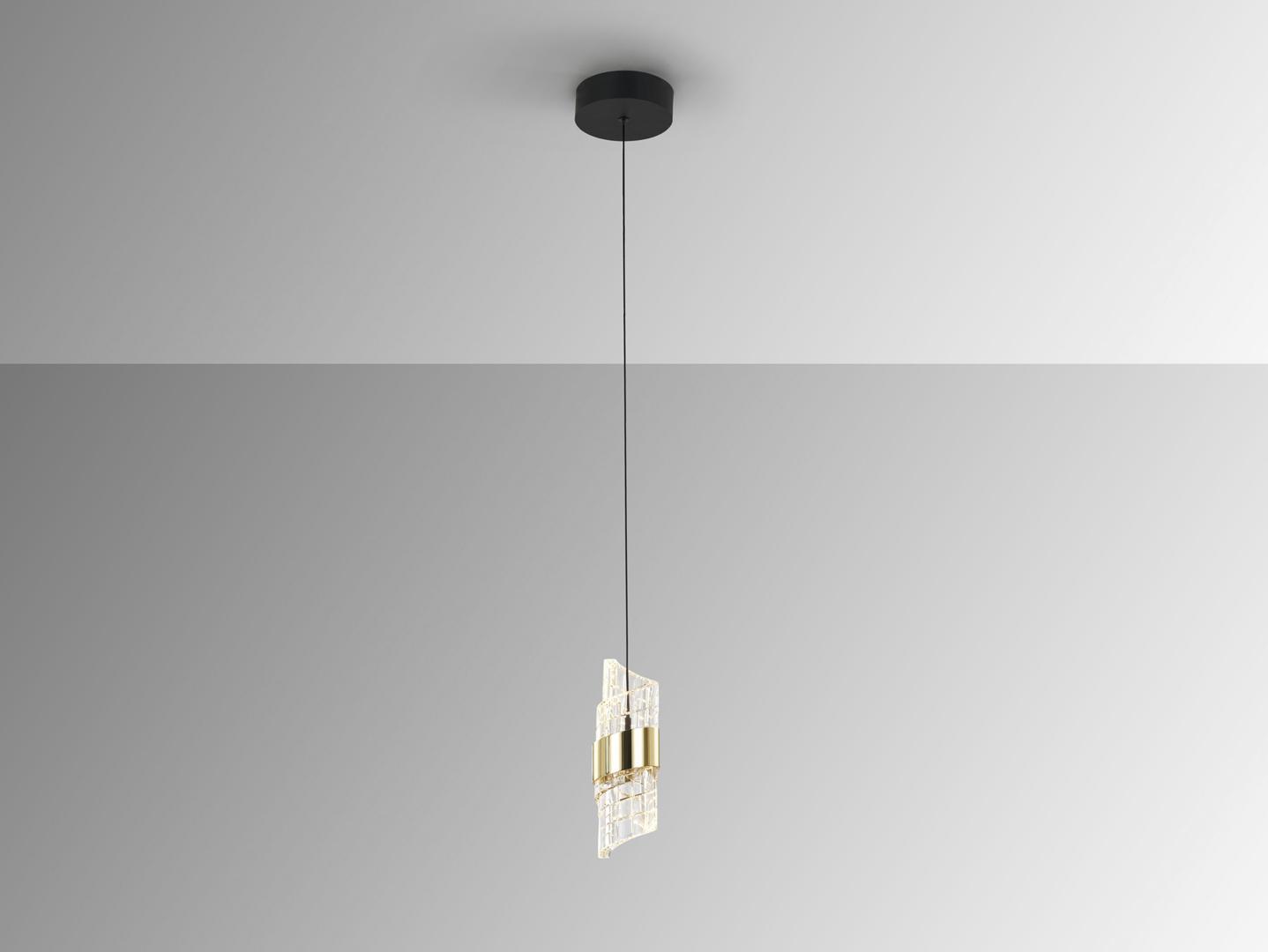 Лампа с 1 светодиодной лампой. Изготовлена из металла с матово-черной и ярко-золотой отделкой. Абажур со спиральным дизайном из формованного и резного акрила. Регулируемая высота. Светодиоды 7 Вт. 656 лм. 3000 К. · Эта лампа оснащена ГРАВИТАЦИОННЫМИ ПЕРЕКЛЮЧАТЕЛЯМИ для улучшения фиксации на потолке.