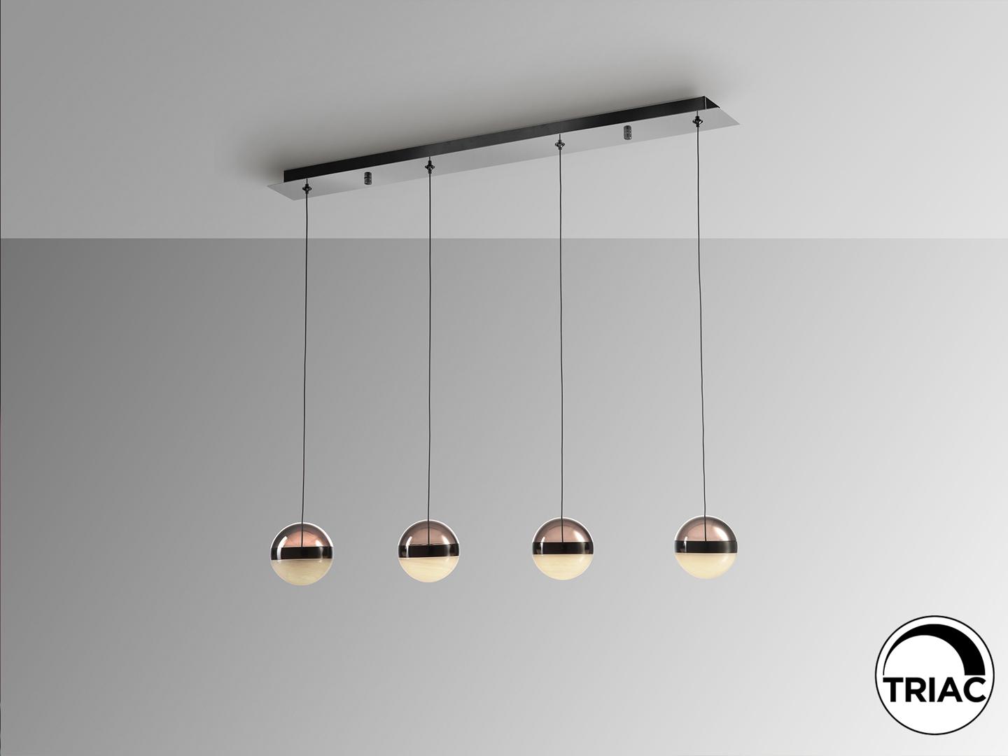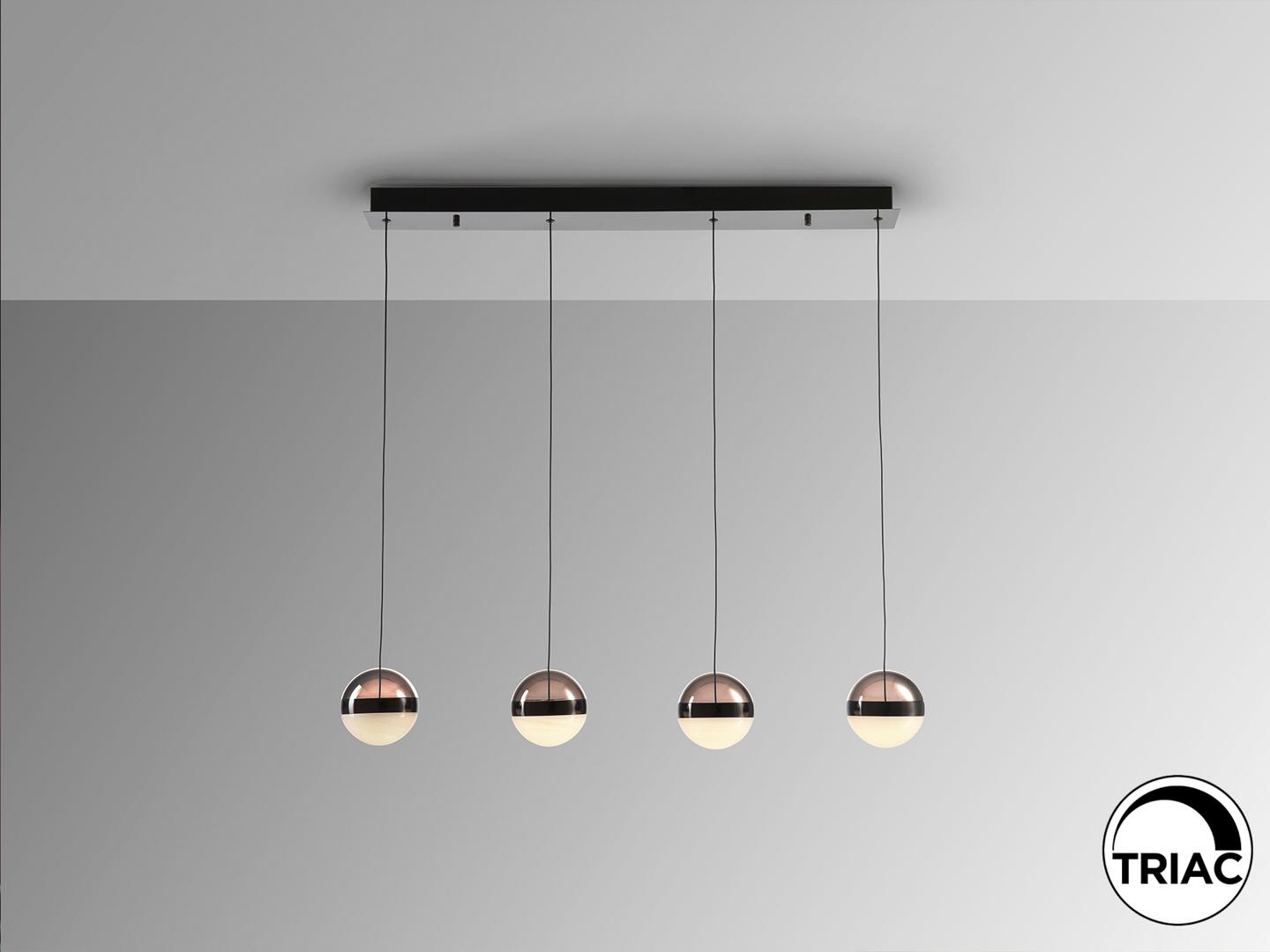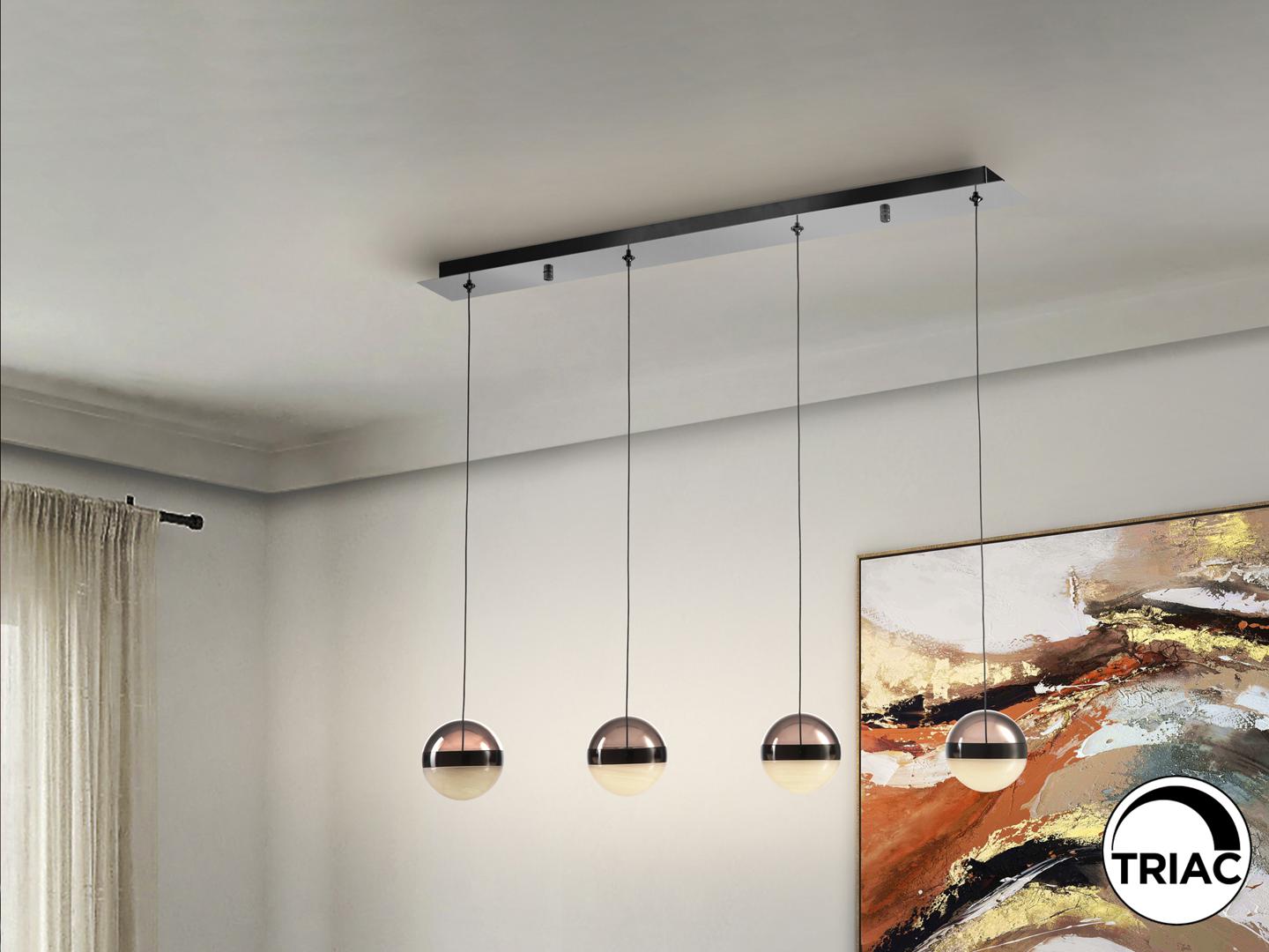 Лампа из 4 светодиодов, металлическая, черного цвета. Абажуры Ø12 см из дымчатого поликарбоната и мраморного стекла, с металлическими кольцами, черным хромом. РЕГУЛИРУЕМАЯ ЯРКОСТЬ. Светодиод 29 Вт. 3000 К. 1304 лм. В этом продукте используется светодиодный драйвер с симисторным типом и регулировкой яркости 0-10 В. Яркость можно регулировать с помощью настенного светодиодного диммера с этими функциями. · Эта лампа поставляется с ГРАВИТАЦИОННЫМИ ПЕРЕКЛЮЧАТЕЛЯМИ для улучшения фиксации на потолке.