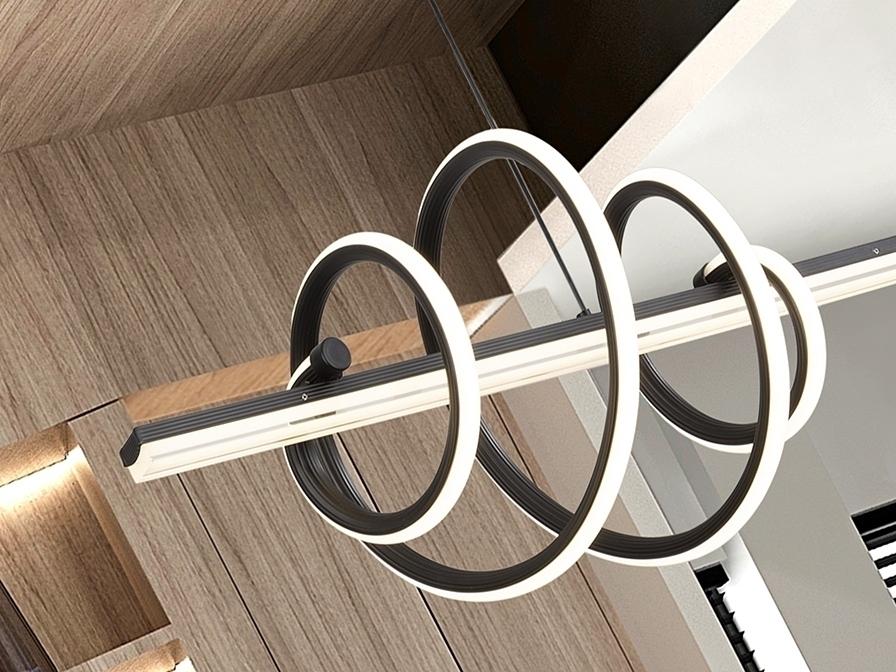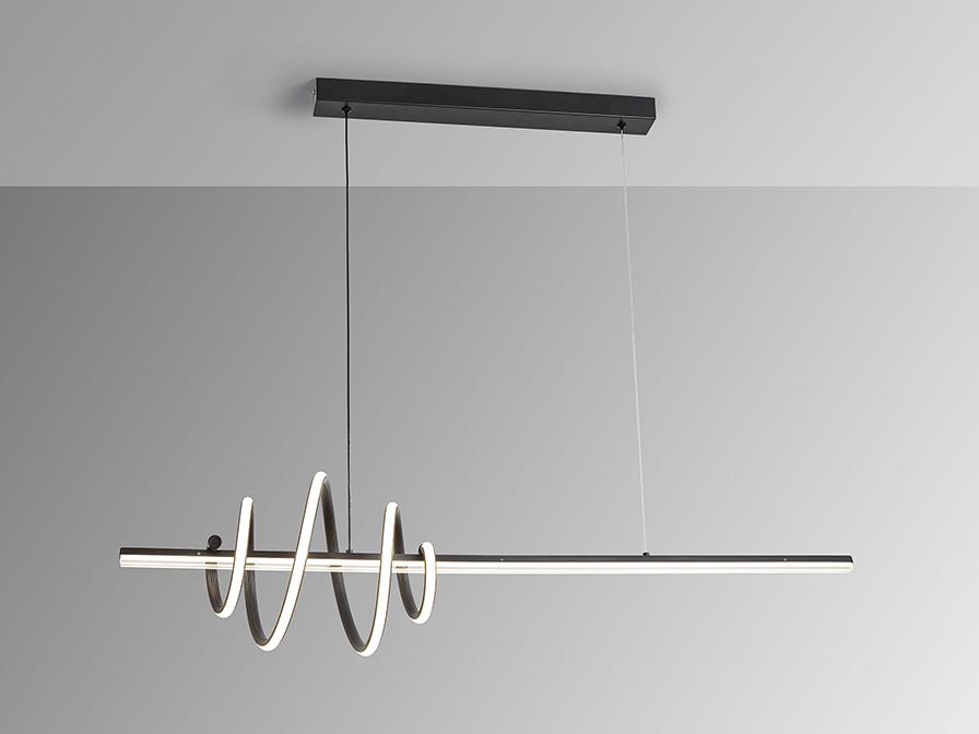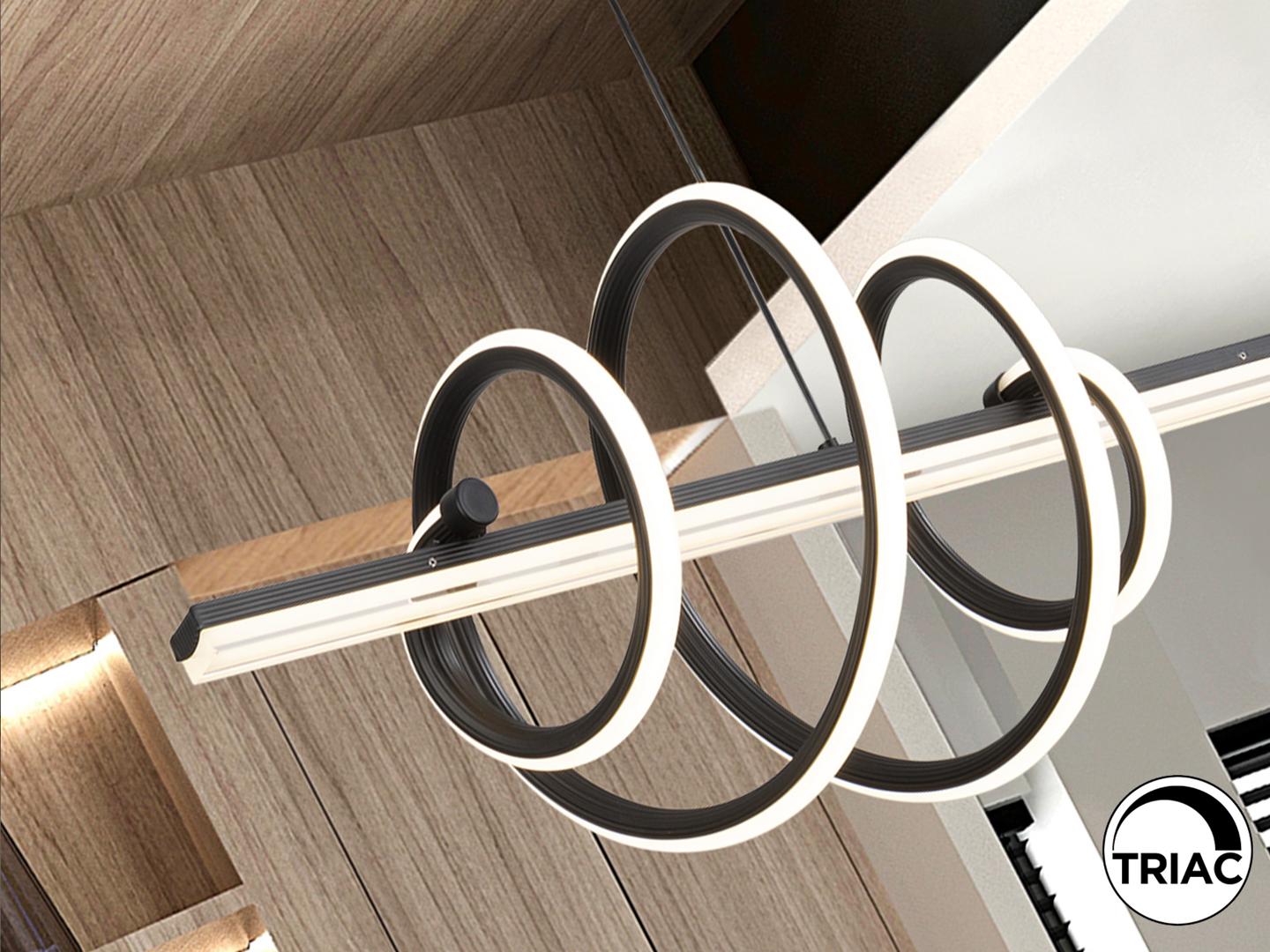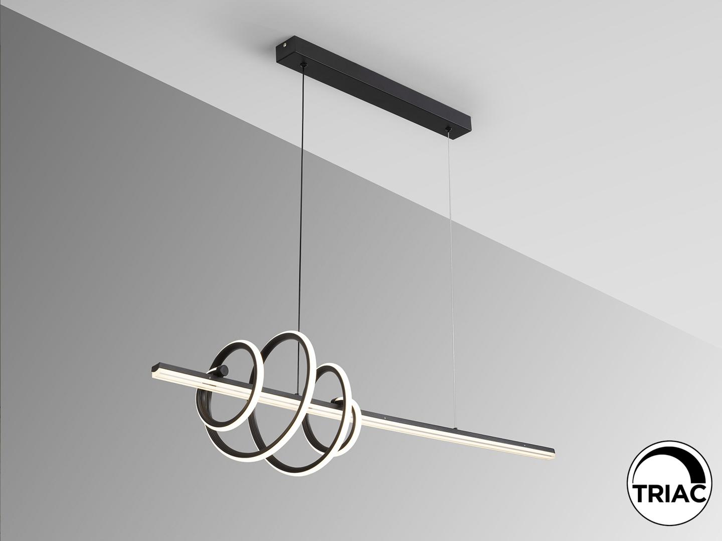 Светильник из металла и алюминия, матово-черного цвета. Акриловый рассеиватель и опаловый силикон. Регулируемая высота. Светодиод 50 Вт, 4470 лм, 3000 К. РЕГУЛИРУЕМАЯ ЯРКОСТЬ В этом продукте используется светодиодный драйвер с симисторным типом и регулировкой яркости 0-10 В. Яркость можно регулировать с помощью настенного светодиодного диммера с этими функциями. · Эта лампа поставляется с ГРАВИТАЦИОННЫМИ ПЕРЕКЛЮЧАТЕЛЯМИ для улучшения фиксации на потолке.