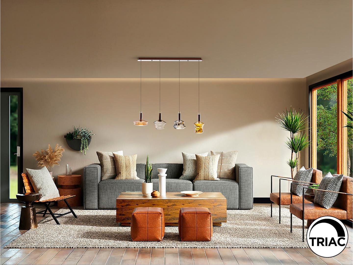 Лампа из 4 светильников из матового алюминия, окрашенного в темно-бронзовый цвет. Гальванические стеклянные плафоны в медном, прозрачном, серебристом и золотом тонах, со светодиодным освещением и опаловым акриловым рассеивателем. Светодиод 24 Вт, 760 лм, 3000 К В этом изделии используется светодиодный драйвер с симистором и возможностью диммирования от 0 до 10 В. Его можно диммировать с помощью настенного светодиодного диммера с такими функциями. · В комплект поставки этой лампы входят ГРАВИТАЦИОННЫЕ КНОПКИ для более надёжной фиксации на потолке.