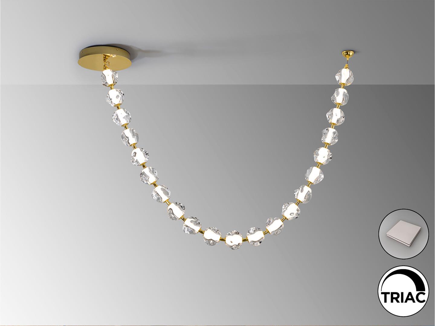 Лампа из металла золотистого цвета и 21 прозрачный акриловый абажур. Светодиод 75,50 Вт, 7129 лм, 3000 К. В комплекте драйвер TRIAC и набор DIM.