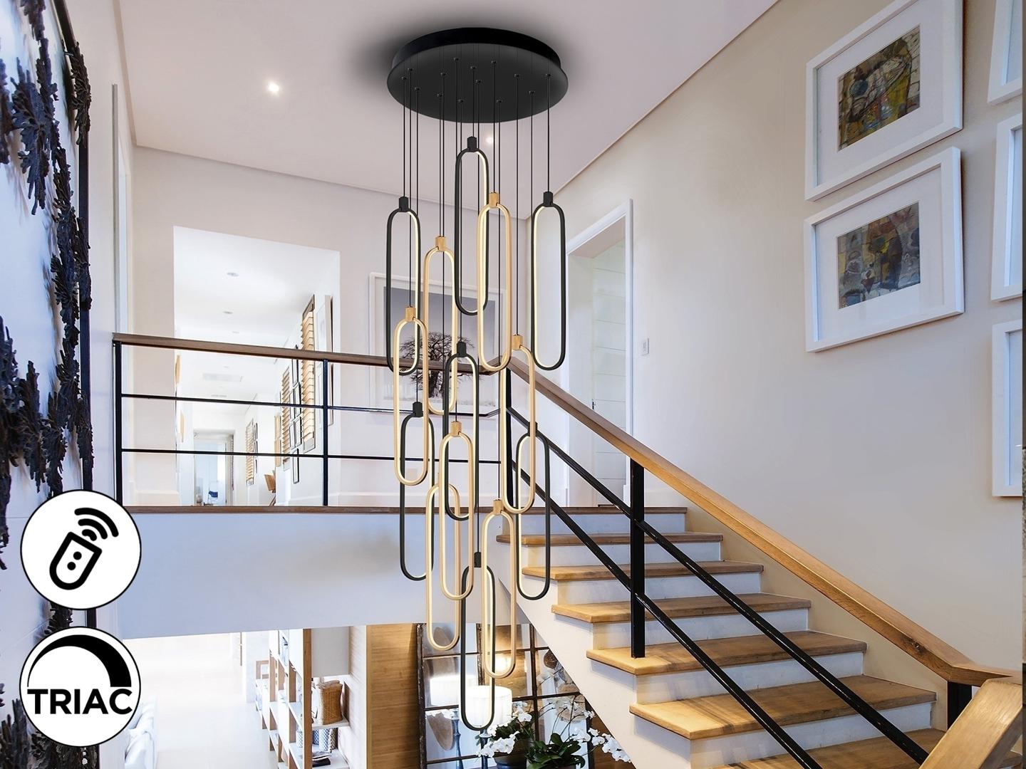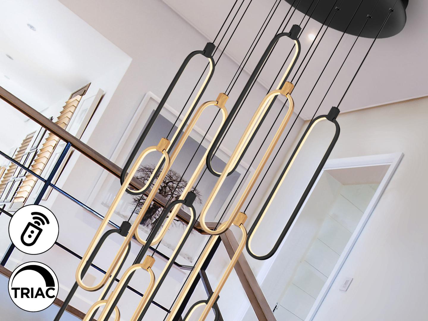 Лампа с 14 светодиодами, выполнена из матового алюминия, розового золота и матово-черного цвета. Рассеиватели из опалового силикона. Регулируемая высота. Светодиод 182 Вт, 16 380 лм, 3000 К. РЕГУЛИРУЕМАЯ ЯРКОСТЬ. В комплект входят драйвер TRIAC и НАБОР РЕГУЛИРОВКИ. В этом изделии используется светодиодный драйвер с симистором и регулировкой яркости 0–10 В, в комплект входит набор диммера с диммером и радиочастотным пультом дистанционного управления, или его можно регулировать с помощью симистора или настенного диммера 0–10 В. Доступна версия на 110 В. · Эта лампа поставляется с ГРАВИТАЦИОННЫМИ ПЕРЕКЛЮЧАТЕЛЯМИ для улучшения крепления к потолку.