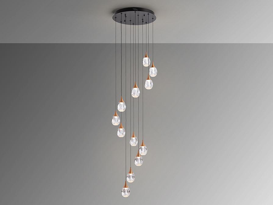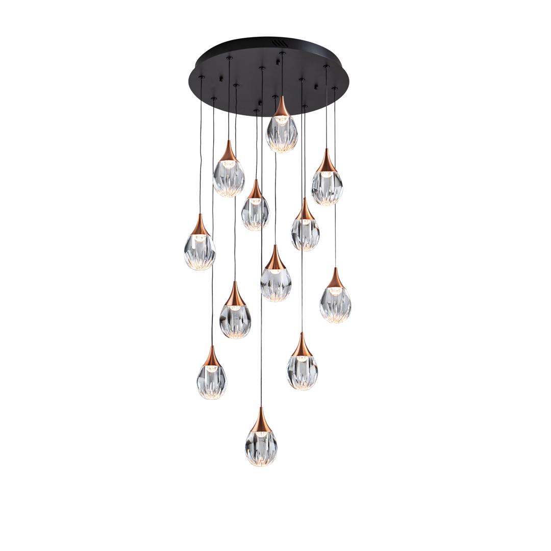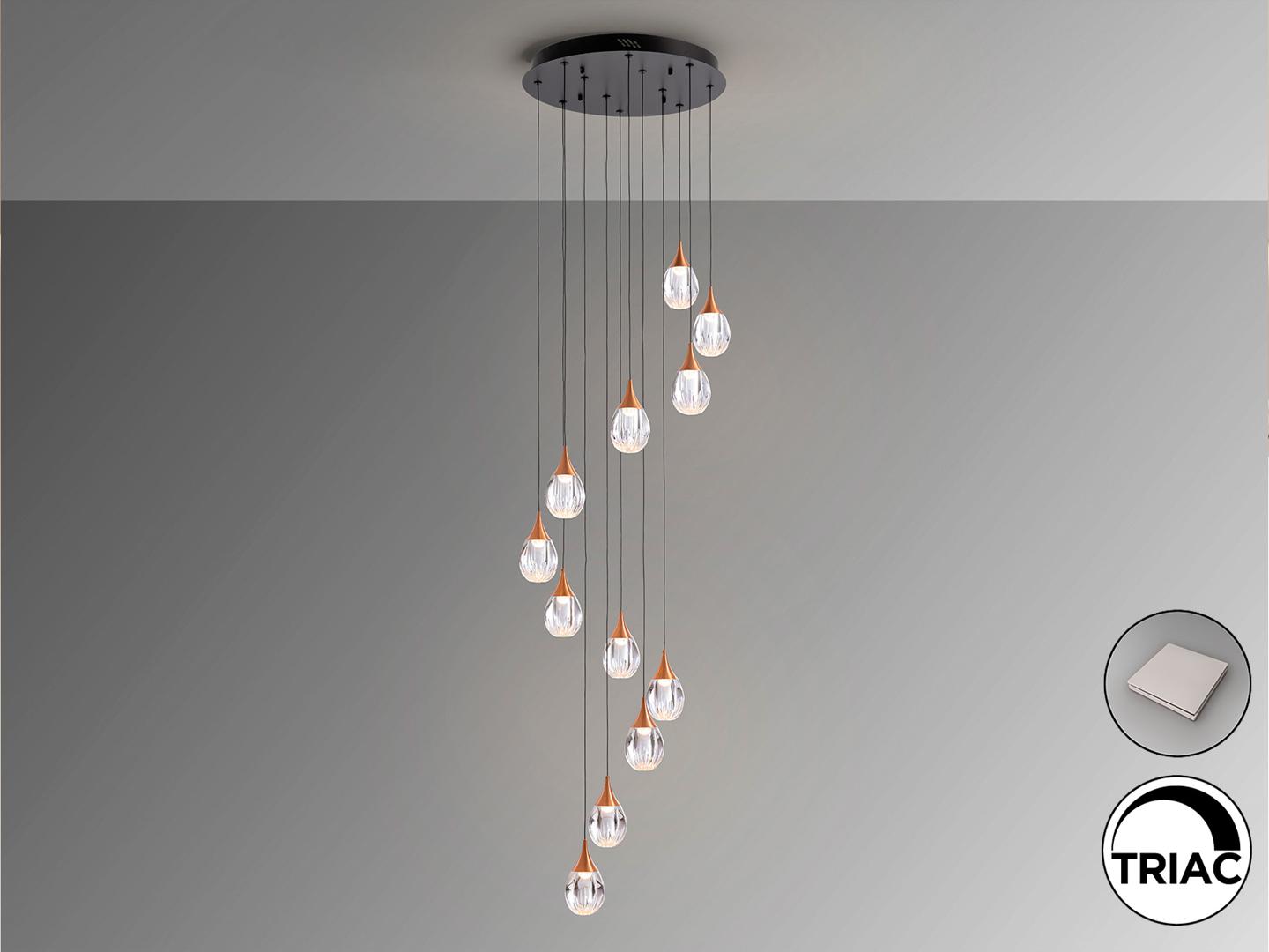 Лампа на 12 лампочек из металла с отделкой матово-черного цвета и медными деталями. Прозрачные акриловые литые абажуры. Регулируемая высота. Светодиод 72 Вт, 2971 лм, 3000 К. РЕГУЛИРУЕМАЯ ЯРКОСТЬ, драйвер TRIAC и НАБОР ДЛЯ РЕГУЛИРОВАНИЯ ЯРКОСТИ входят в комплект. · Эта лампа поставляется с ГРАВИТАЦИОННЫМИ ПЕРЕКЛЮЧАТЕЛЯМИ для улучшения крепления на потолке. Этот продукт использует светодиодный драйвер с симистором и регулировкой яркости 0-10 В, включает в себя набор диммера с диммером и радиочастотным пультом дистанционного управления, или его можно регулировать с помощью симистора или настенного диммера 0-10 В... доступна версия на 110 В.
