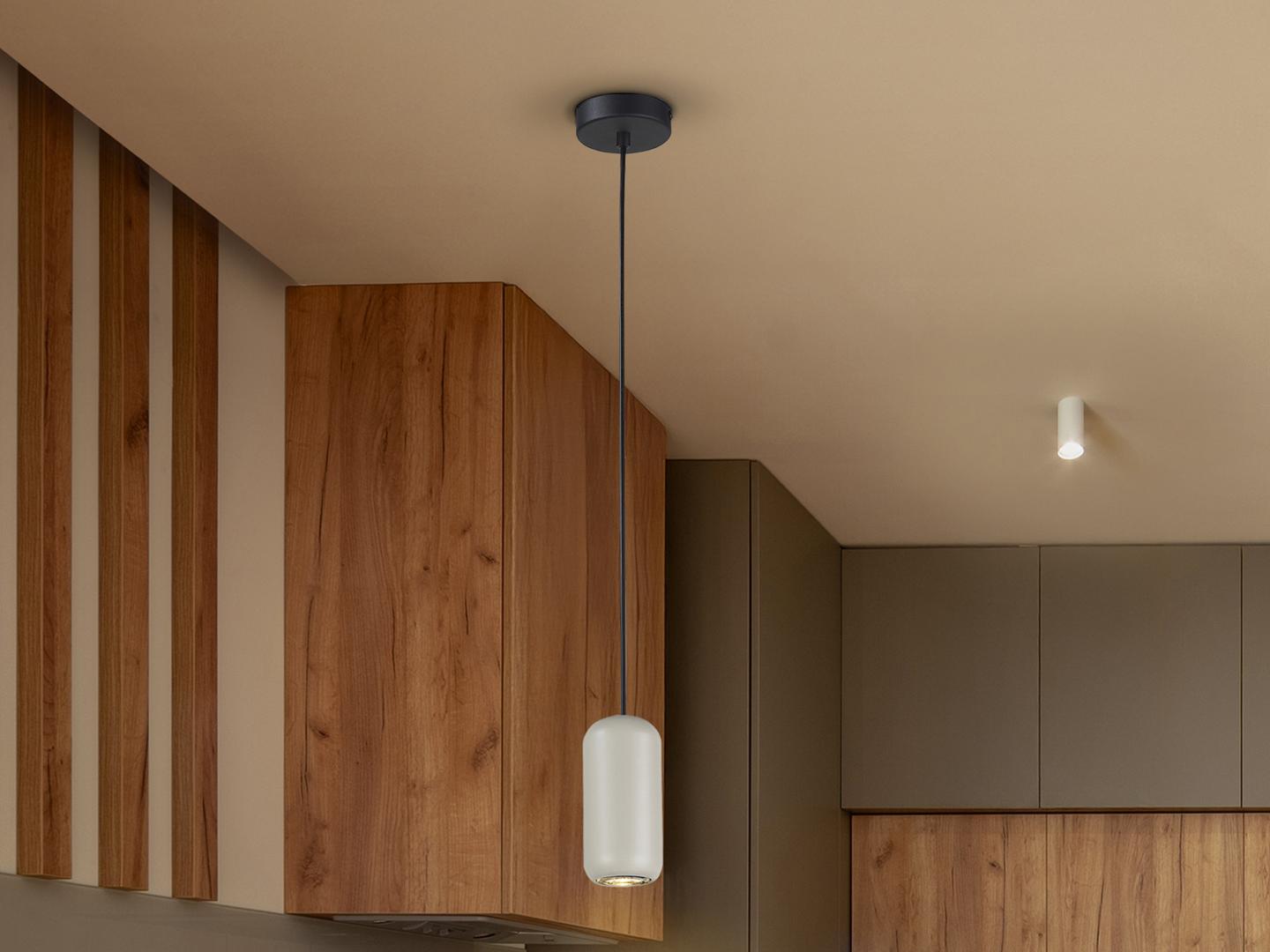 Светильник изготовлен из металла с матово-чёрным покрытием. Абажур из металла светло-серого цвета. Регулируется по высоте. Патрон GU10.