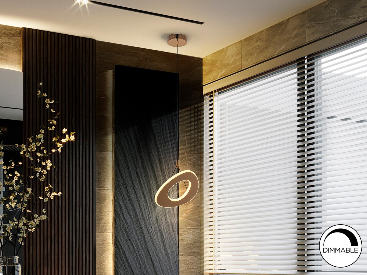 Лампа на 1 лампу. Изготовлена из золотистой стали, полированная поверхность. Рассеиватель из опалового акрила. Регулируемая высота. Светодиодное освещение мощностью 20 Вт, цветовая температура 2700 К. Регулировка яркости. · Этот светильник оснащен GRAVITY TOGGLES для улучшения фиксации на потолке.