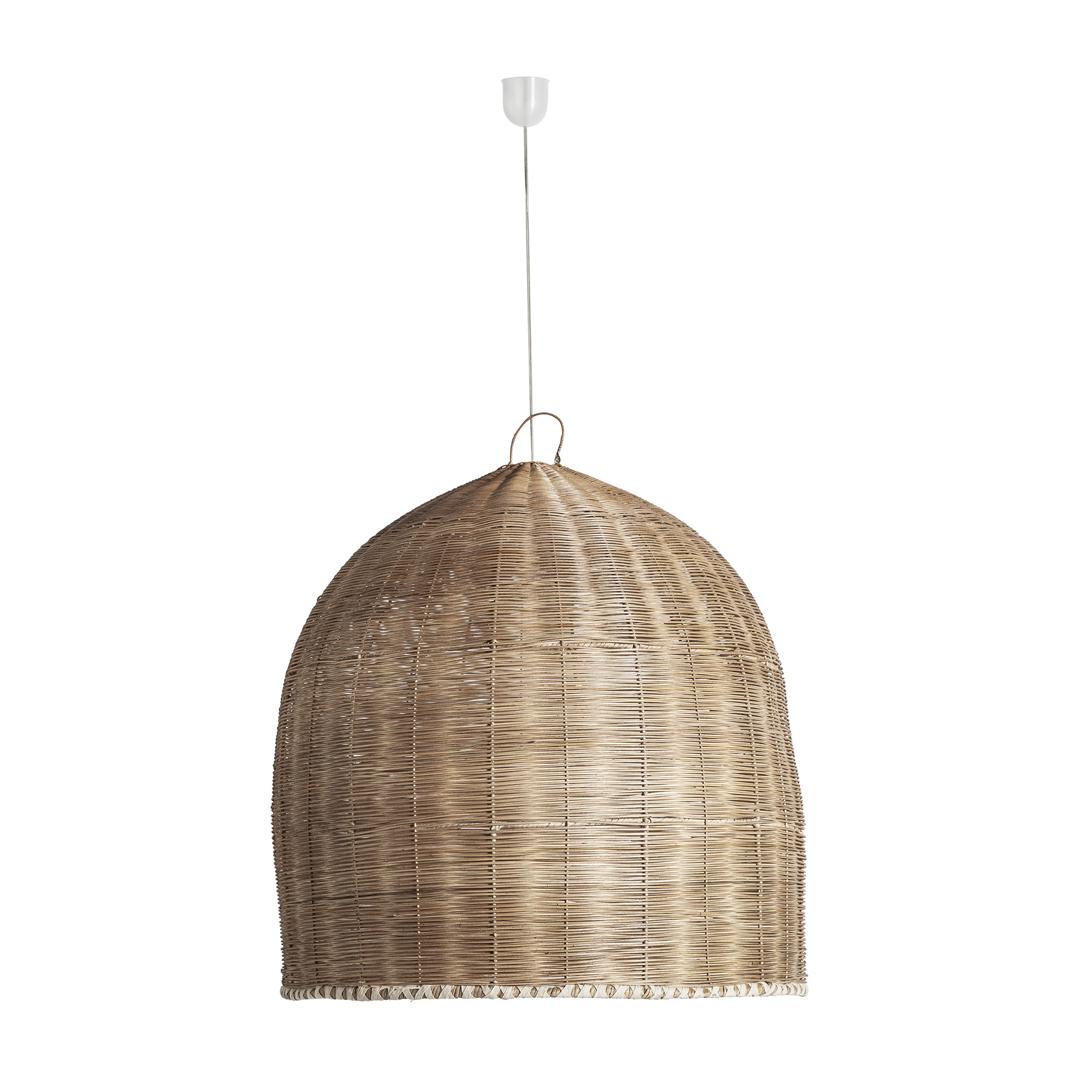 Подвесной светильник в стиле бохо, изготовлен из коричневого ротанга.