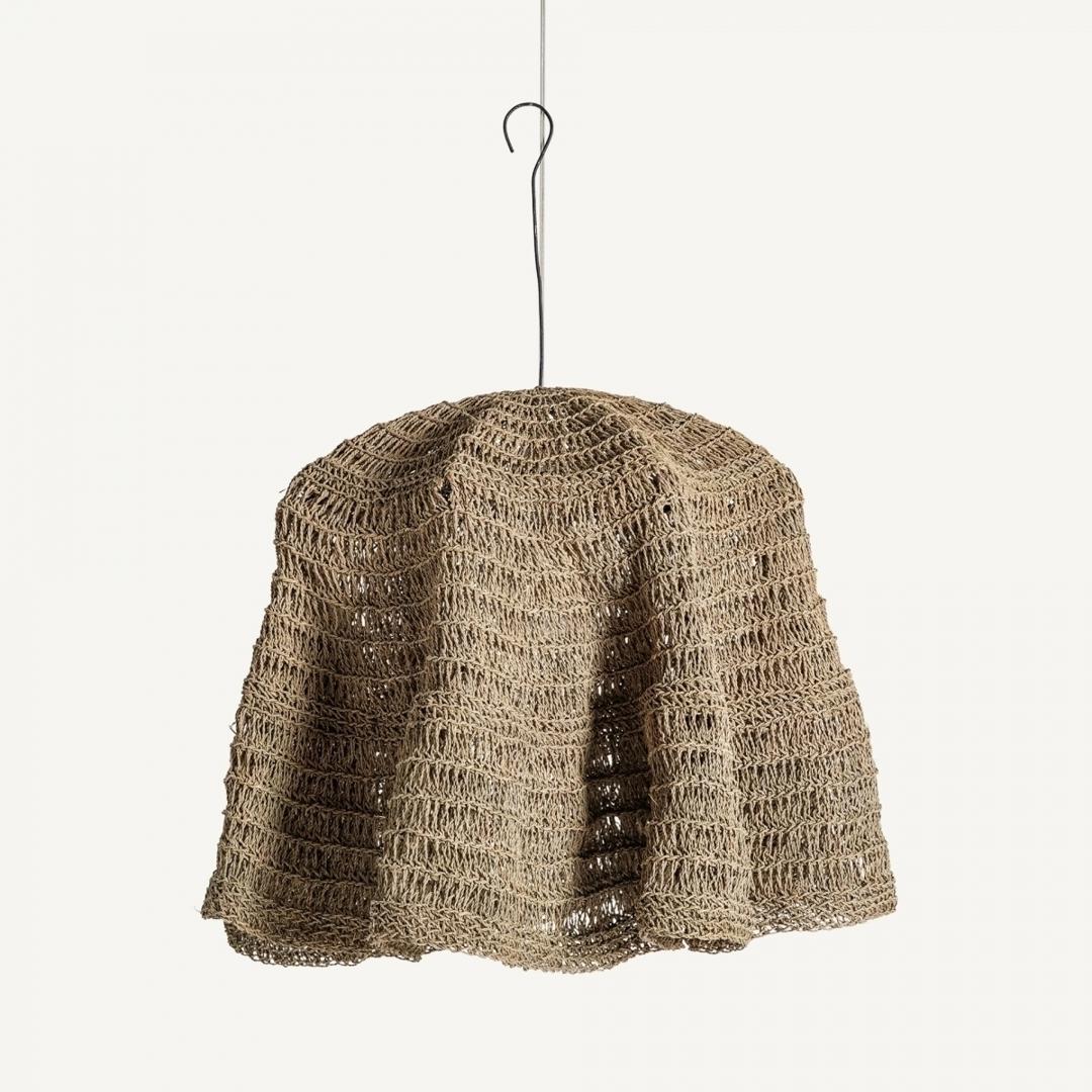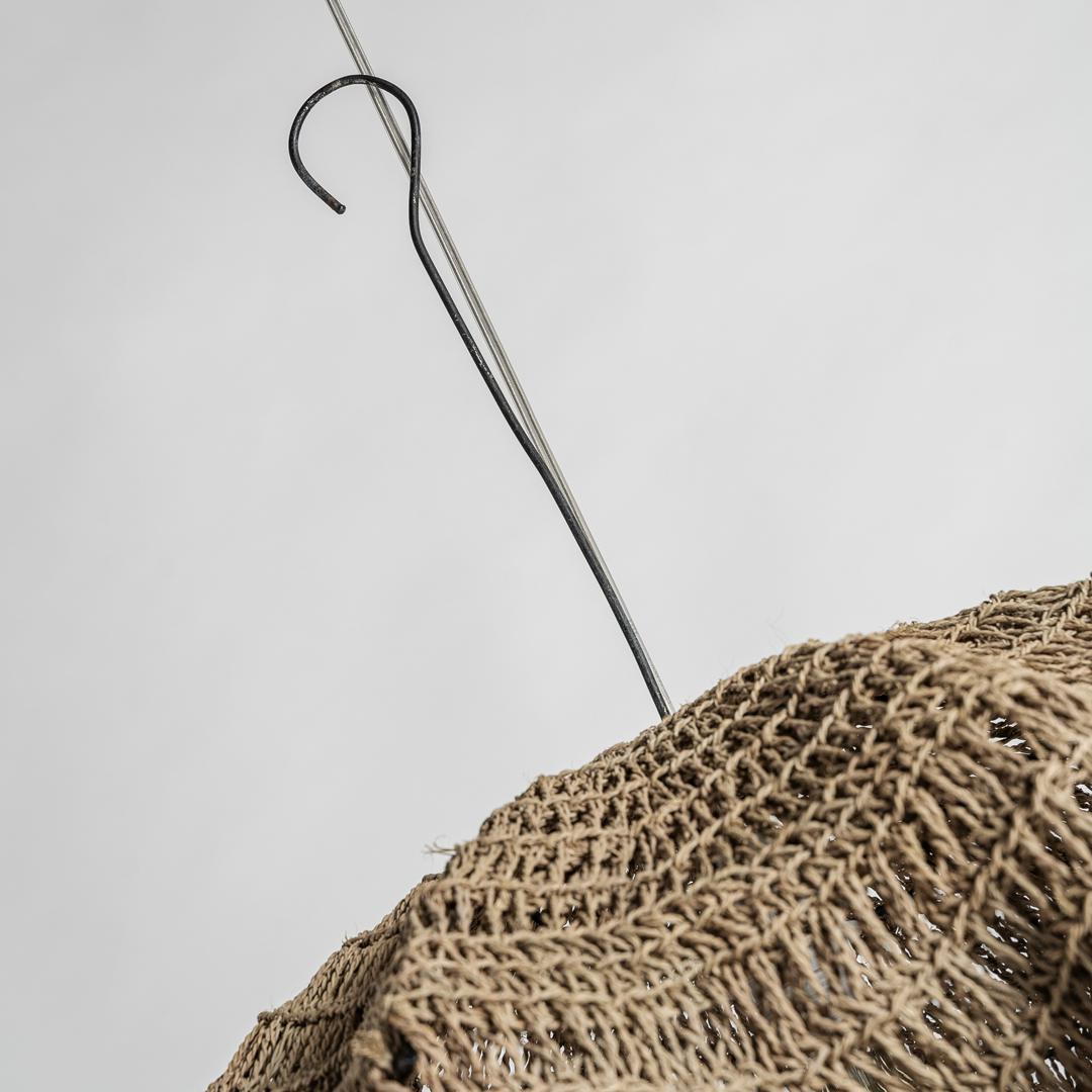 Подвесной светильник в стиле бохо, изготовлен из натурального волокна коричневого цвета.