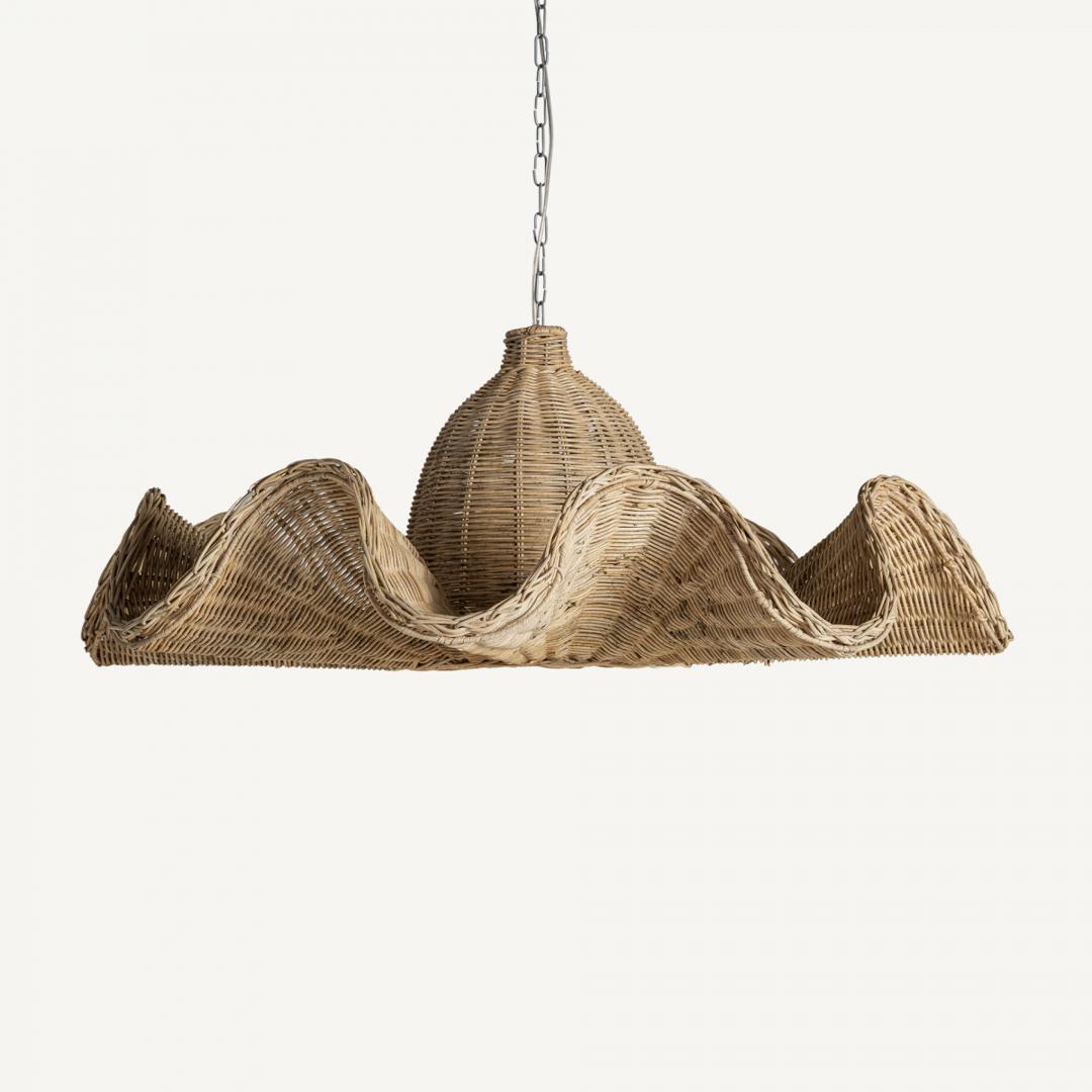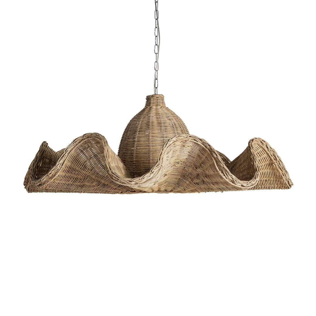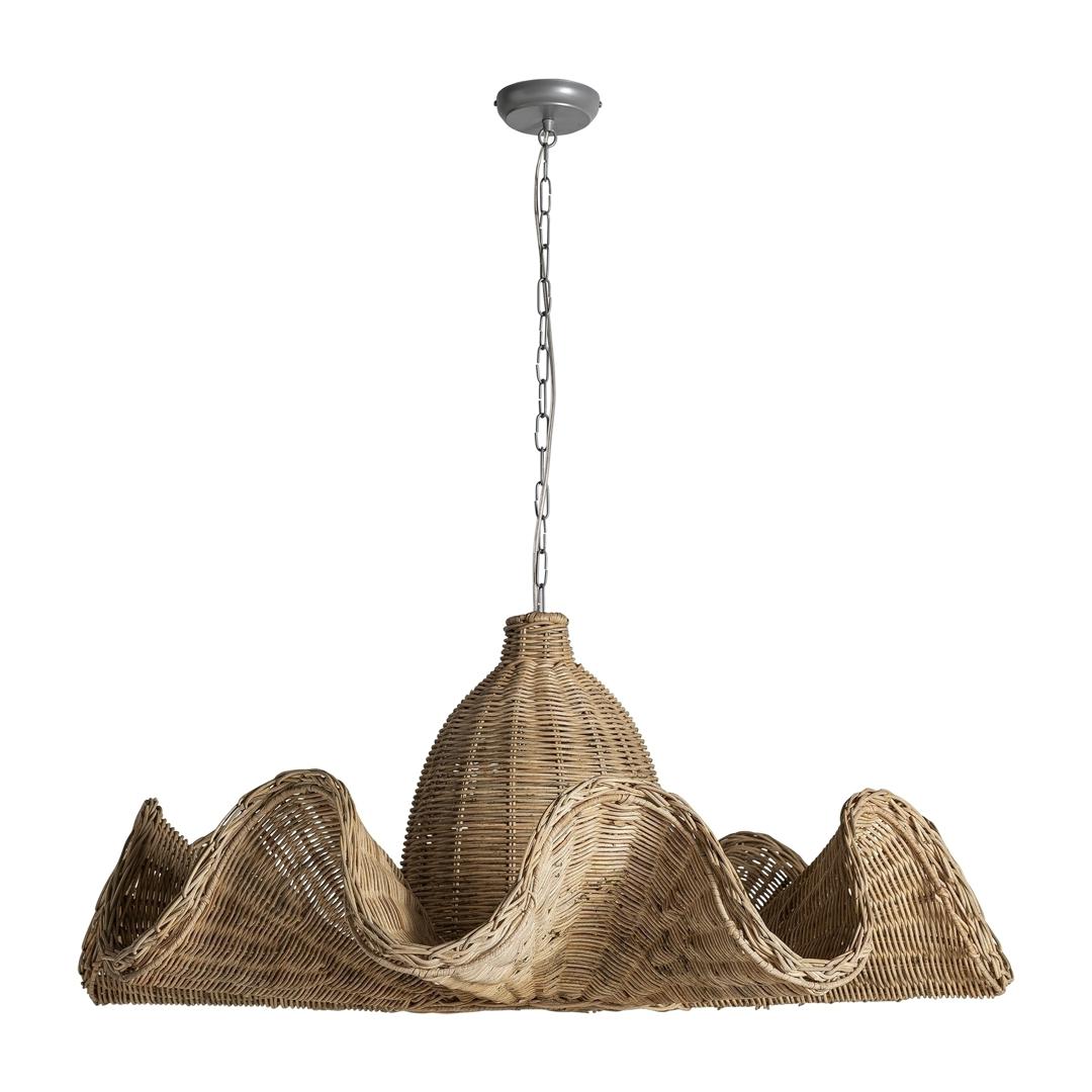 Подвесной светильник в стиле бохо, изготовлен из коричневого ротанга.