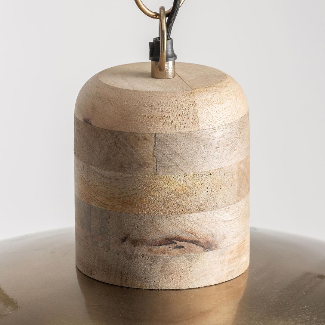 Потолочный светильник золотого цвета, стиль арт-деко. Изготовлен из железа в сочетании с деревом манго.