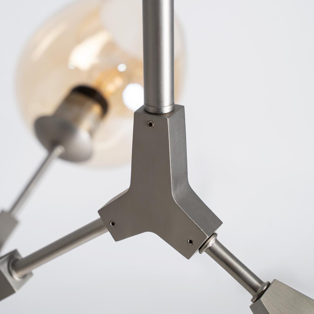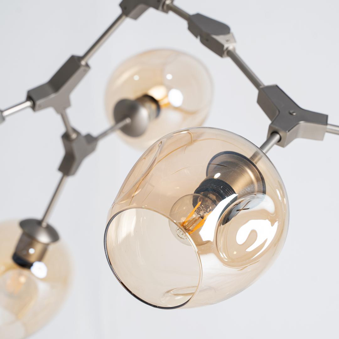 Подвесной светильник, изготовленный из стали цвета шампанского в сочетании со стеклом янтарного цвета. Ширина: 100 см, Глубина: 60 см, Высота: 95 см