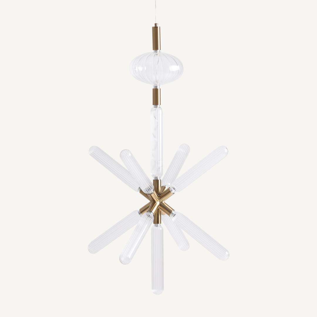 Подвесной светильник из прозрачного стекла в сочетании со сталью бронзового цвета. Ширина: 42 см, Глубина: 42 см, Высота: 100 см