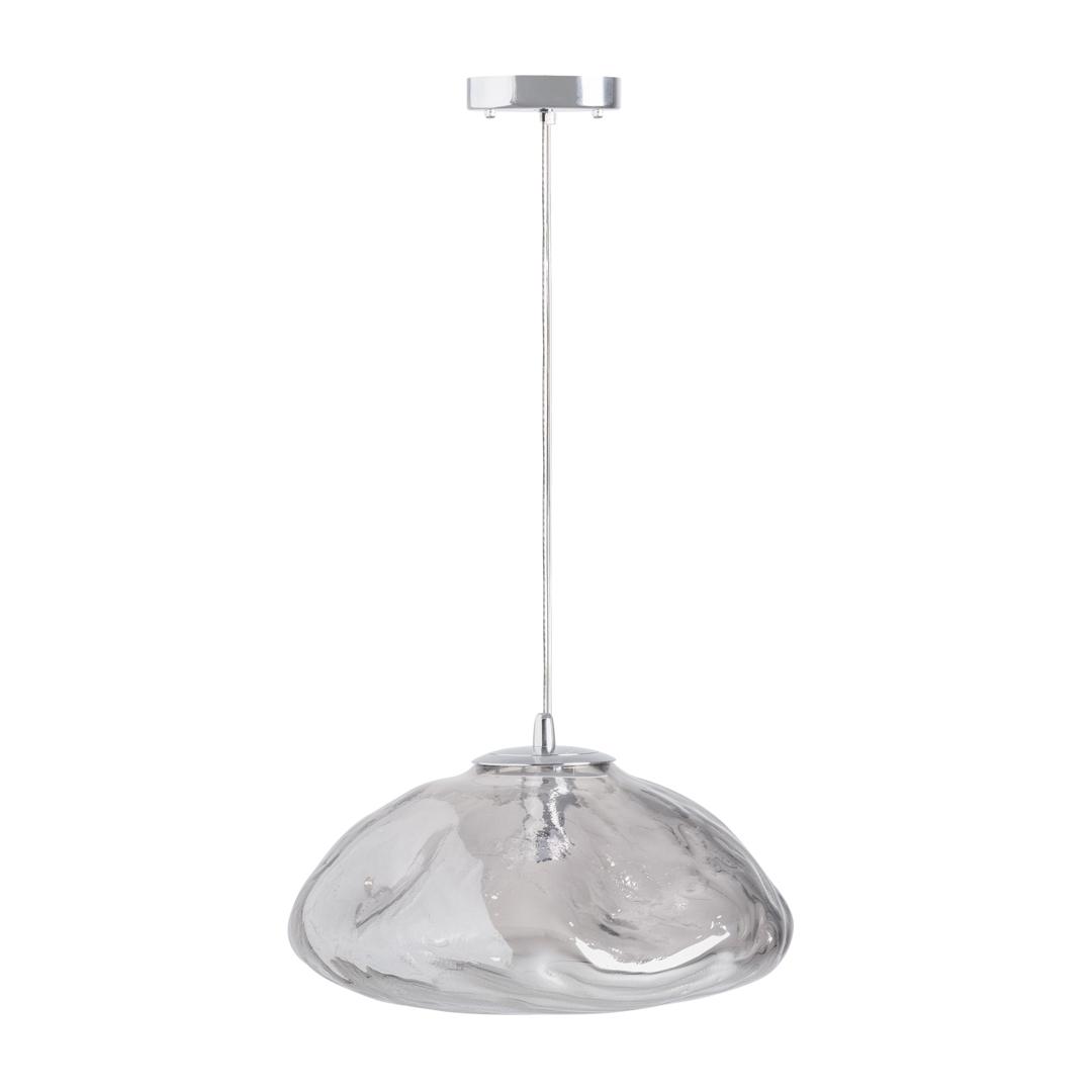 Подвесной светильник из серого стекла с дымчатой отделкой в сочетании с серебристым железом. Ширина: 35 см, Глубина: 35 см, Высота: 19 см