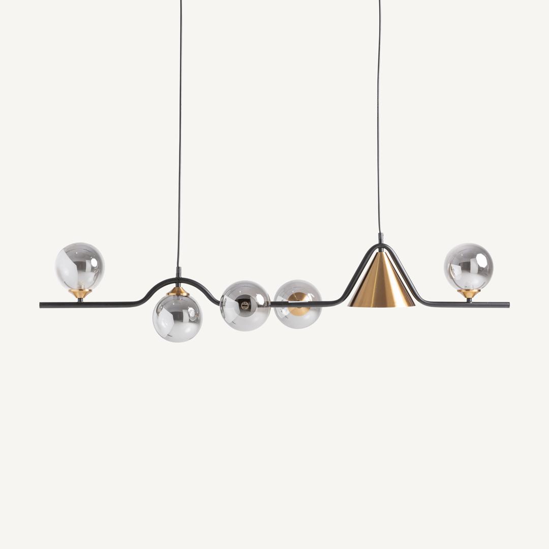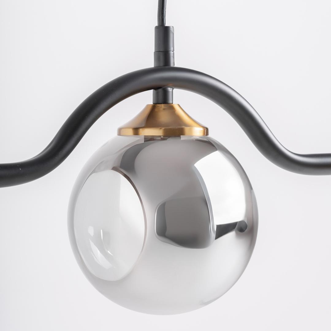 Подвесной светильник из серого стекла с дымчатой отделкой в сочетании со сталью медного цвета и черным железом. Ширина: 123 см, Глубина: 33 см, Высота: 27 см