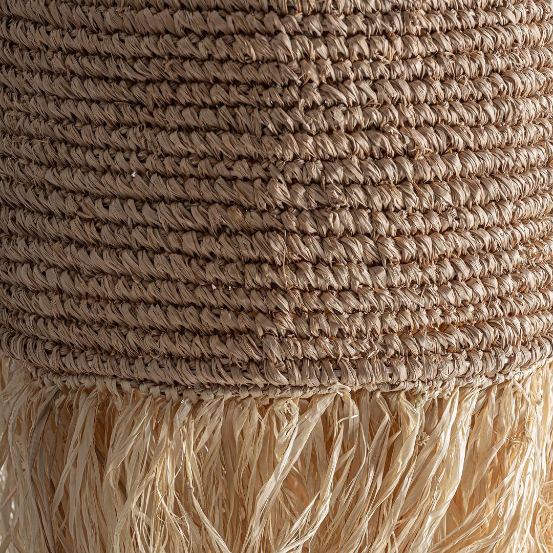 Потолочный светильник натурального цвета в современном стиле. Изготовлен из натурального волокна.
