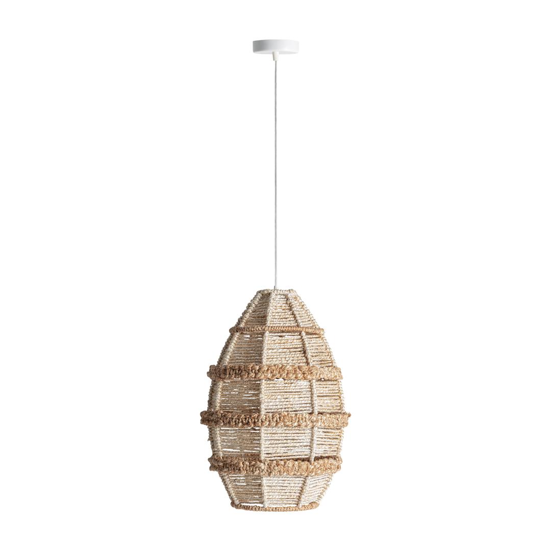 Подвесной светильник Shanea в стиле бохо, изготовлен из джута бежевого и бежевого цветов. Ширина: 38 см, Глубина: 38 см, Высота: 57 см