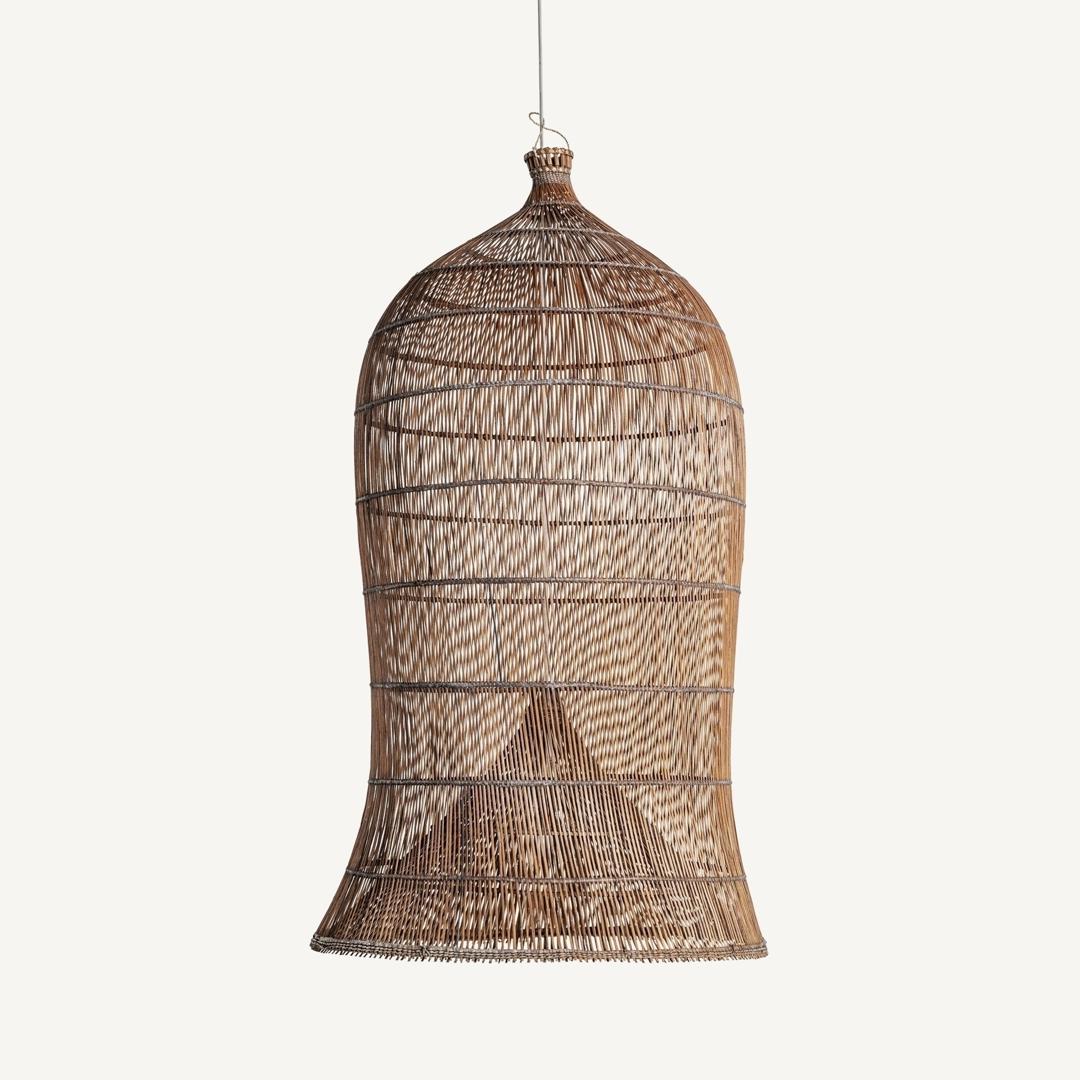 Подвесной светильник в стиле бохо в форме колокола, изготовленный из бамбука коричневого цвета. Ширина: 59 см, Глубина: 59 см, Высота: 110 см