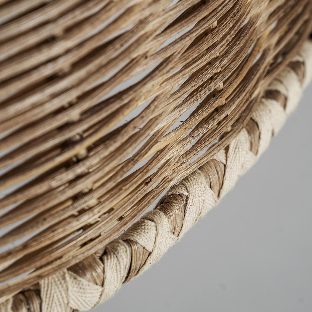 Подвесной светильник в стиле бохо, изготовлен из коричневого ротанга.