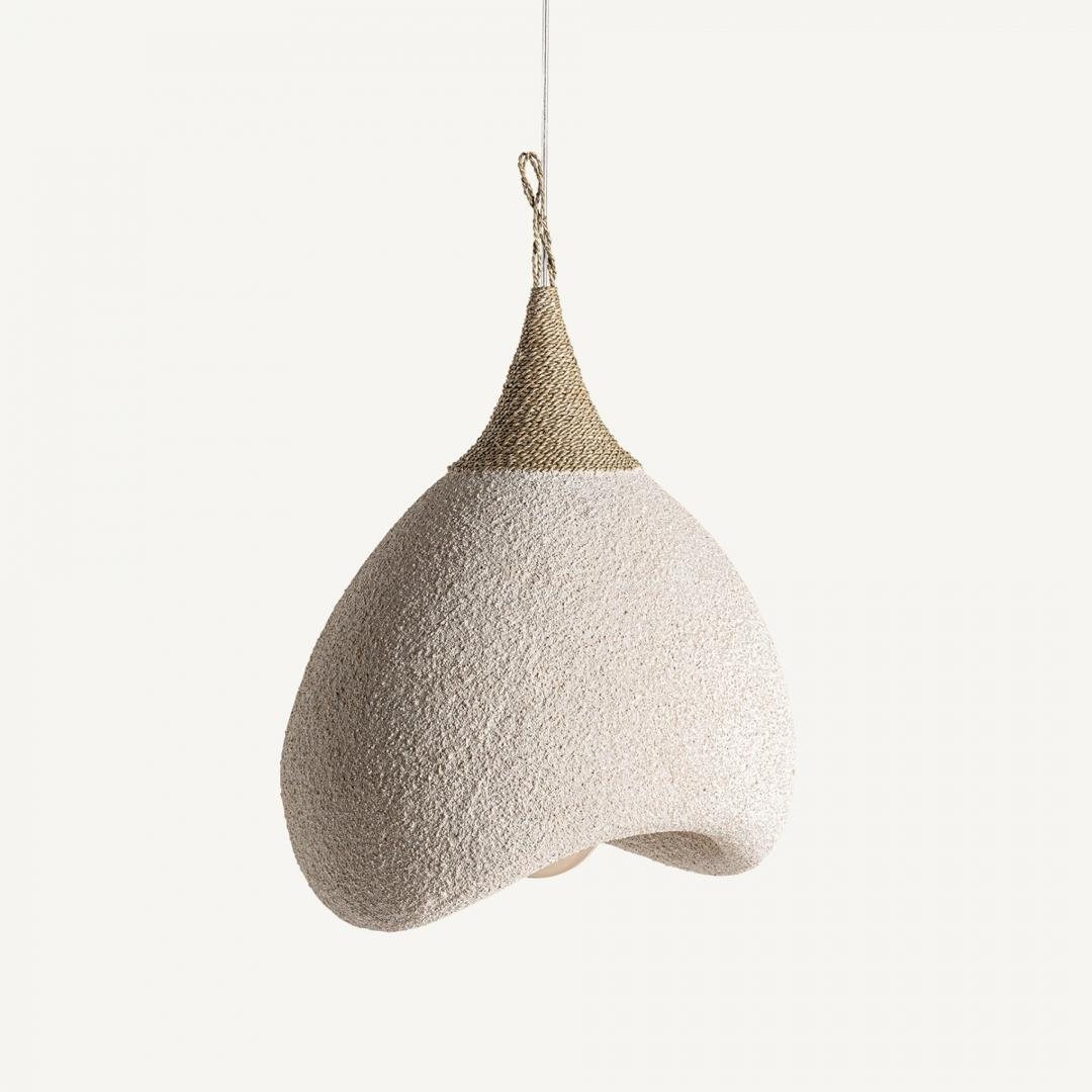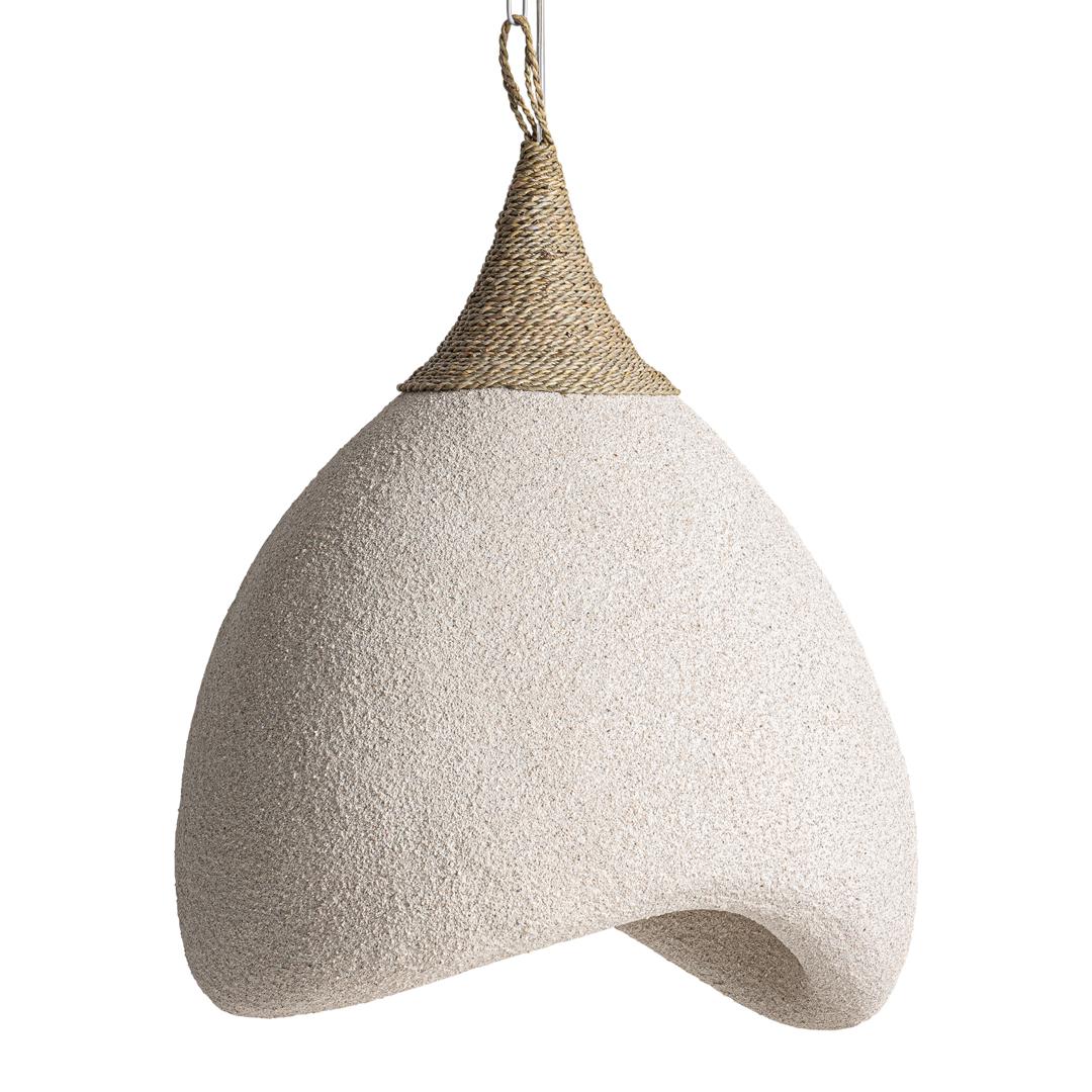Подвесной светильник Nyland в деревенском стиле, изготовлен из кремовой смолы с грубой отделкой в сочетании с джутом песочного цвета.