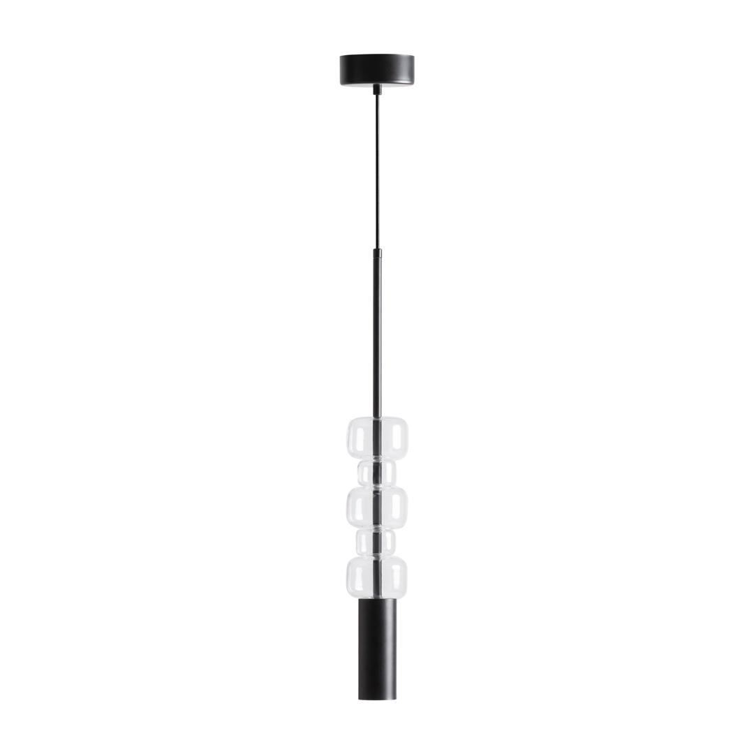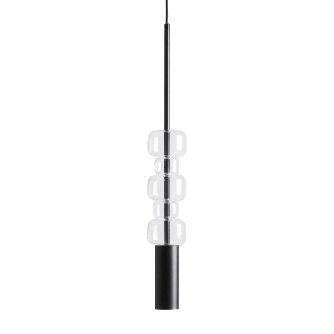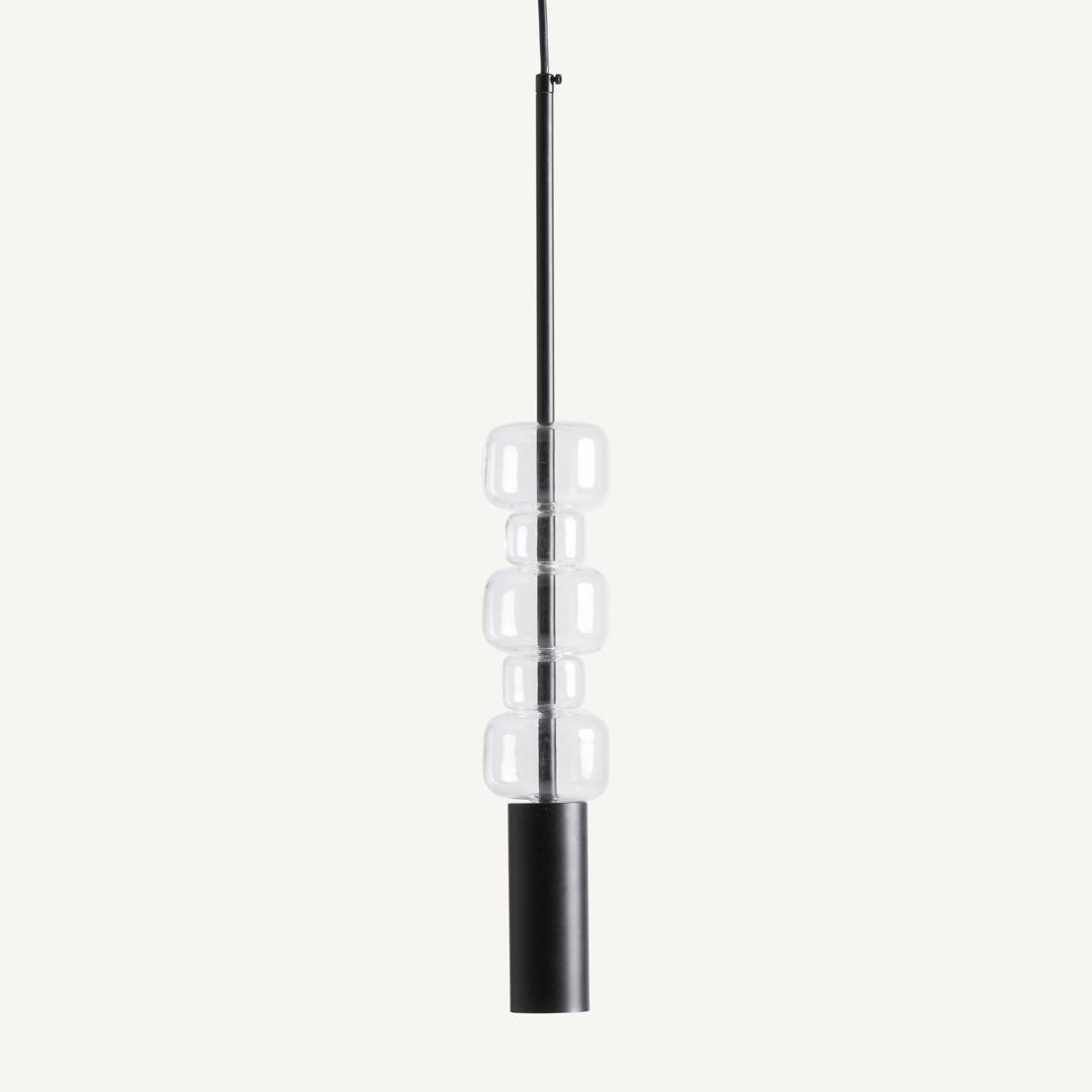 Подвесной светильник из прозрачного стекла в сочетании с черной сталью. Ширина: 9 см, Глубина: 9 см, Высота: 60 см