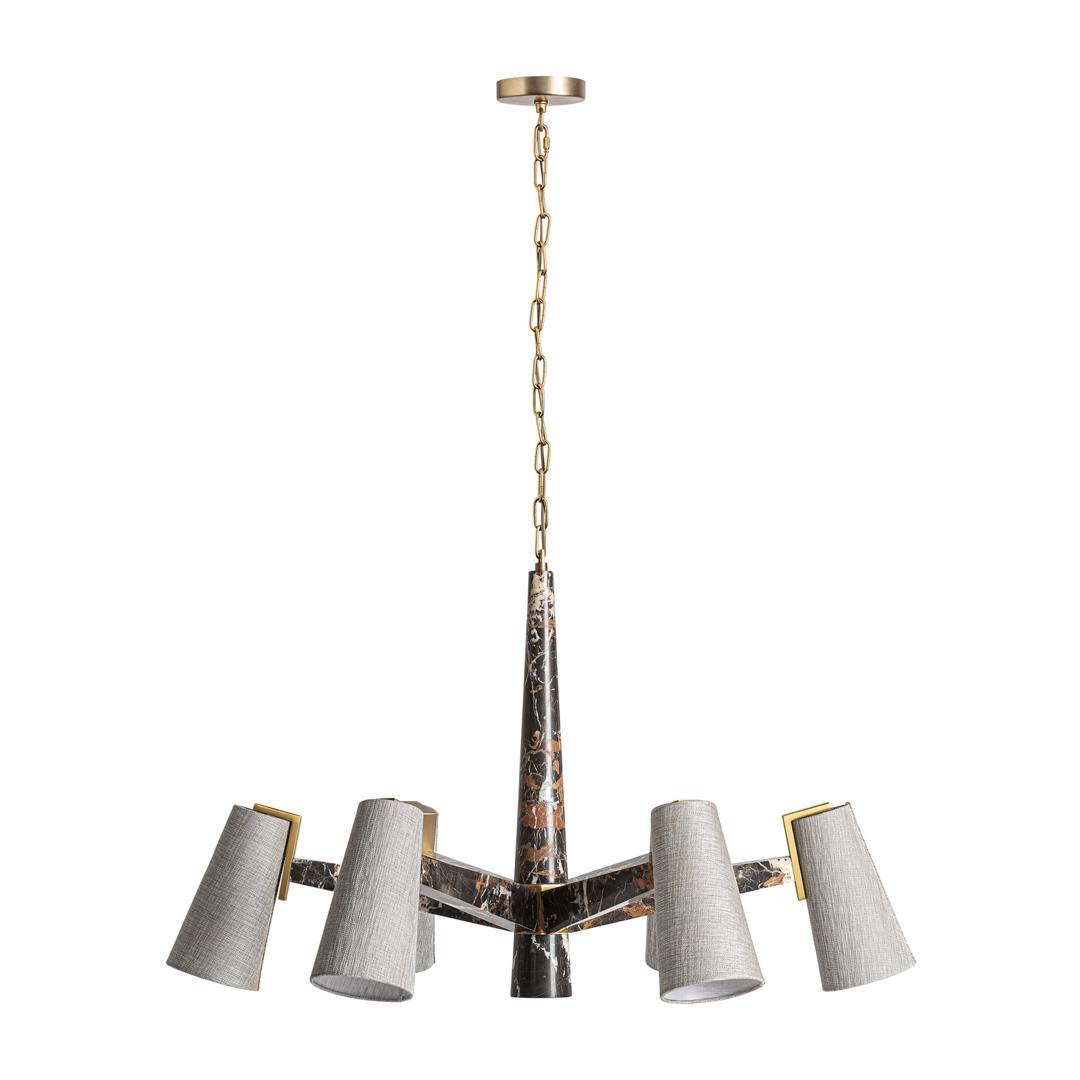 Подвесной светильник Wale в стиле ар-деко, изготовленный из черного мрамора в сочетании с металлом золотистого цвета и полиэстером кремового оттенка. Изделие разборное. Ширина: 97 см, Глубина: 97 см, Высота: 58 см
