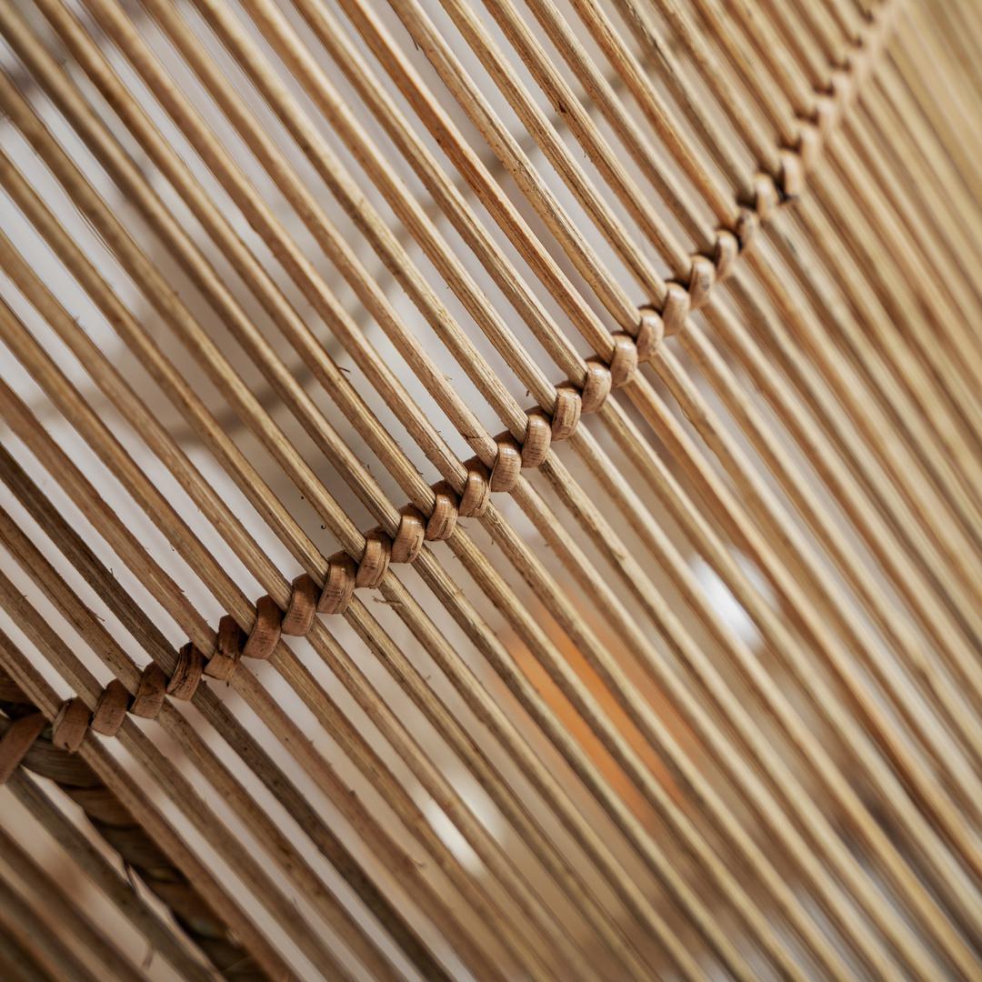 Подвесной светильник, изготовленный из светло-коричневого ротанга в сочетании с коричневой древесиной суара. Ширина: 27 см, Глубина: 27 см, Высота: 113 см