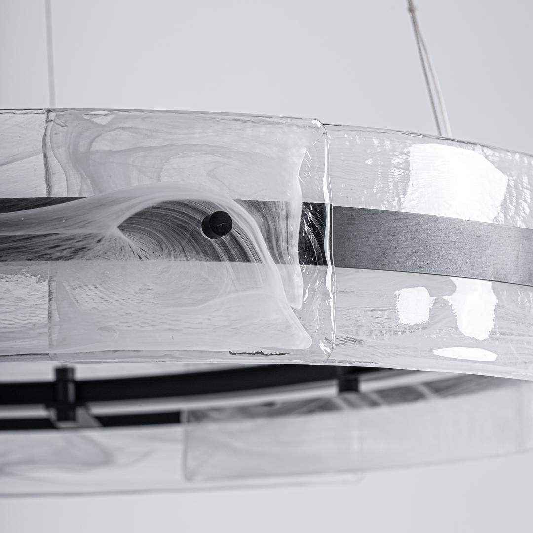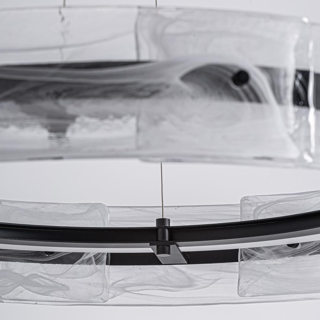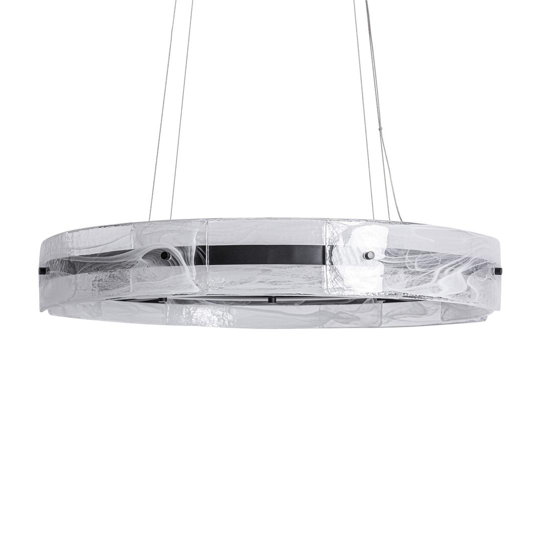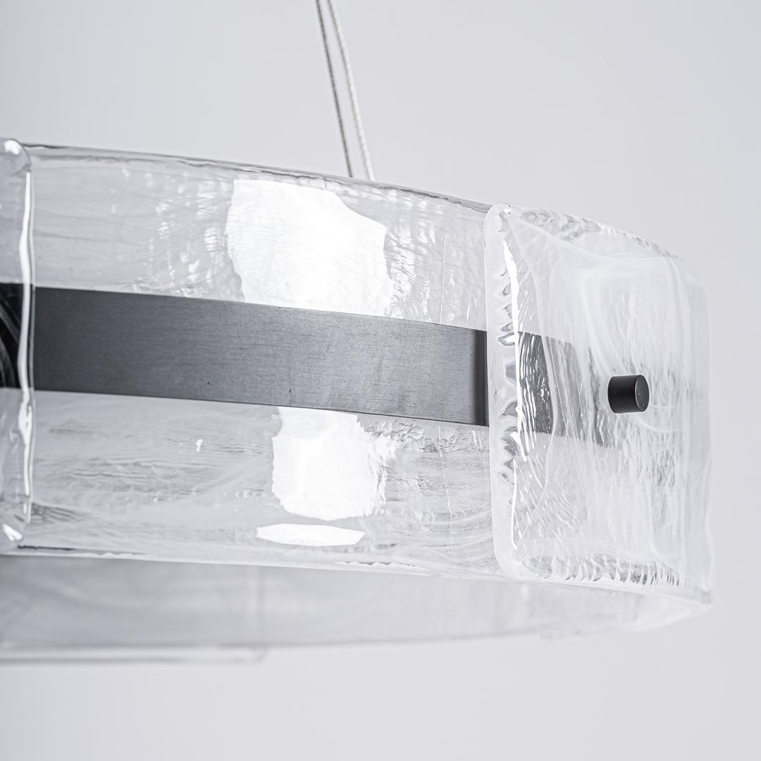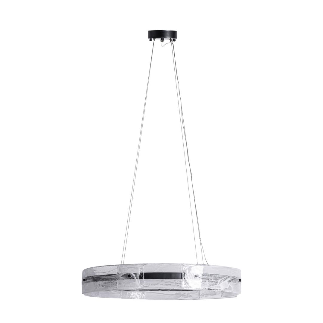 Подвесной светильник Mukam в стиле ар-деко, выполненный из прозрачного стекла в сочетании с черным железом. Ширина: 80 см, Глубина: 80 см, Высота: 130 см