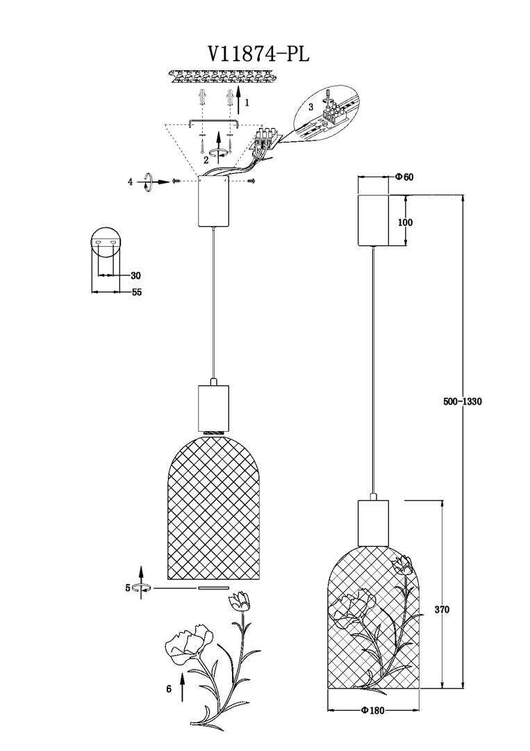 В*Ш*Г потолочной чаши, см - 6*10*10
