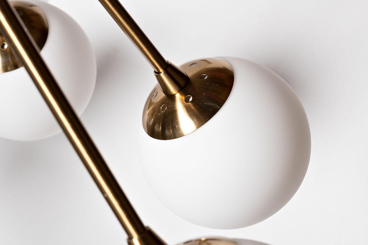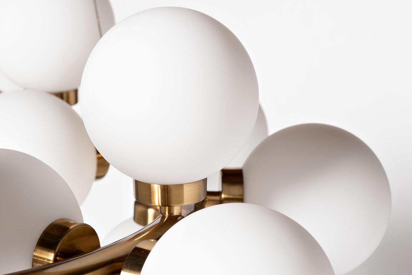 description-full - Потолочный светильник "Шары" предназначен для освещения комнаты. Оригинальная форма, металл цвета золота и небольшие шары из матового стекла позволяют выглядеть ему функционально, лаконично вместе с тем дорого и респектабельно. Стекло обладает термостойкостью и прочностью. Сочетание белого стекла с золоченым металлом делают светильник изысканным и оригинальным. Мягкий и приглушенный свет позволяет использовать подвесной светильник в гостиной, спальне и других комнатах с потолками любой высоты в различных современных интерьерах. Подвесной светильник из белых шаров будет являться основным акцентом в интерьере комнаты, добавит интерьеру изюминки. Рекомендуемая площадь освещения 25 м2.