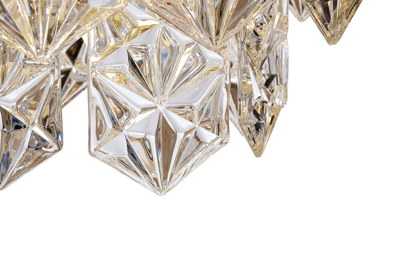 description-full - Современная потолочная люстра Тендер (Tender) в стиле ар-деко выполнена из множества стеклянных элементов в виде кристаллов, которые преломляют свет и создают бесподобный эффект мягкого сияния. Визуально дизайнерская люстра с подвесками напоминает купол, который скрывает лампы и мягко рассеивает свет, создавая уютную атмосферу в помещении. Данная модель легко справляется со своими основными функциями и декоративными задачами за счет блеска латуни и легкости стекла. Если вам нужна красивая, надежная стеклянная люстра, дизайн которой будет актуальным годами, обратите внимание на Тендер (Tender). Эстетика и качество в этом светильнике – на высоте! Рекомендованная площадь освещения - 16-22 м2.