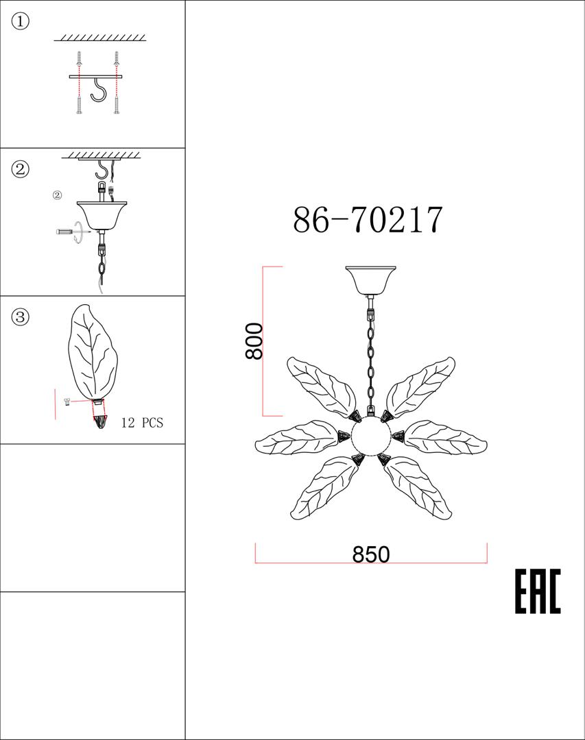 Потолочный светильник Garda Decor 86-70217 Люстра d.85 h.50см, металл цвет золото арт. 86-70217