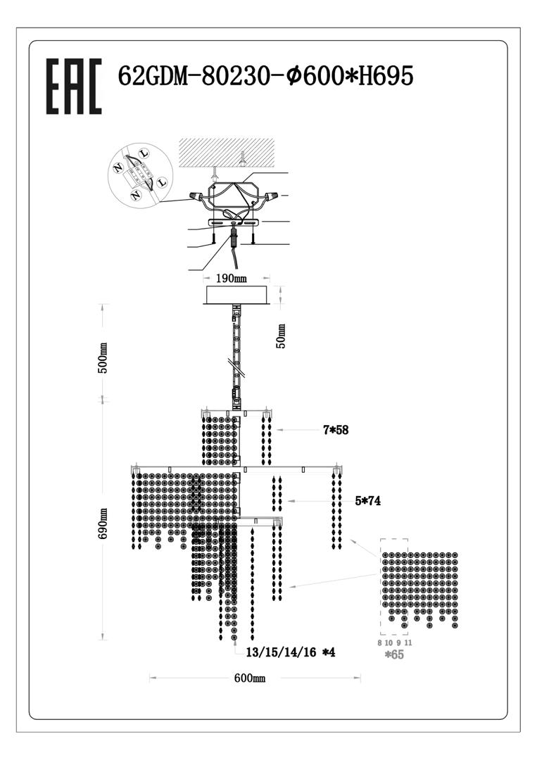 Потолочный светильник Garda Decor 62GDM-80230 Люстра Каскад (Cascada) d60см h65см арт. 62GDM-80230