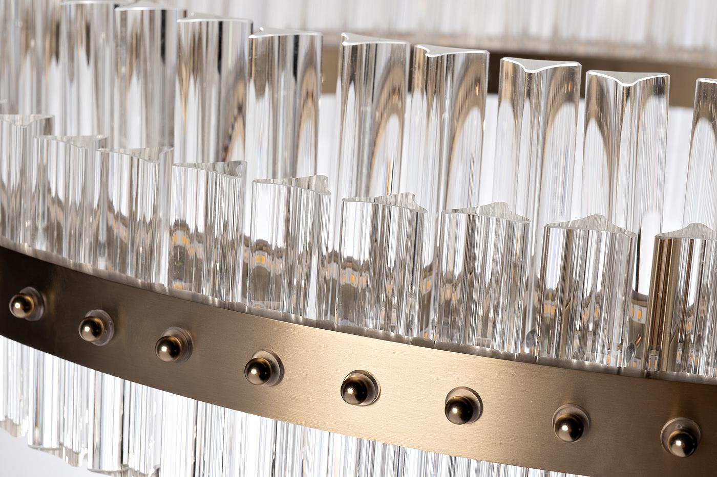 description-full - Дизайнерская круглая люстра стильно выглядит за счет простого дизайна, в котором первую скрипку играет сочетание стекла и металла. Лаконичная металлическая сфера дополнена многочисленными стеклянными элементами, которые рассеивают световые потоки и придают светильнику изысканности. Люстра из прозрачного стекла органично вписывается в пространство гостиной, спальни, столовой, холла, эффектно смотрится в стилистике ар-деко, минимализм, фьюжн. Это выгодная инвестиция в красоту и комфорт вашего интерьера.
