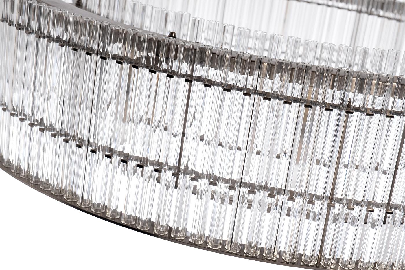description-full - Подвесная люстра круглой формы выполнена из премиальных материалов и являет собой яркий пример светильника в стилистике роскошного ар-деко. Подчеркнет прекрасный вкус владельцев и индивидуальность интерьера. За счет комбинации металла и прозрачного стекла дизайнерская люстра выглядит легкой, хорошо рассеивает свет от лампочек и создает приятную атмосферу в помещении. Стильный потолочный светильник найдет себе место в гостиной, столовой, холле, студии. Он легко сочетается с остальным декором и мебелью в аналогичной стилистике. Рекомендуемая площадь освещения 24-30 м2
