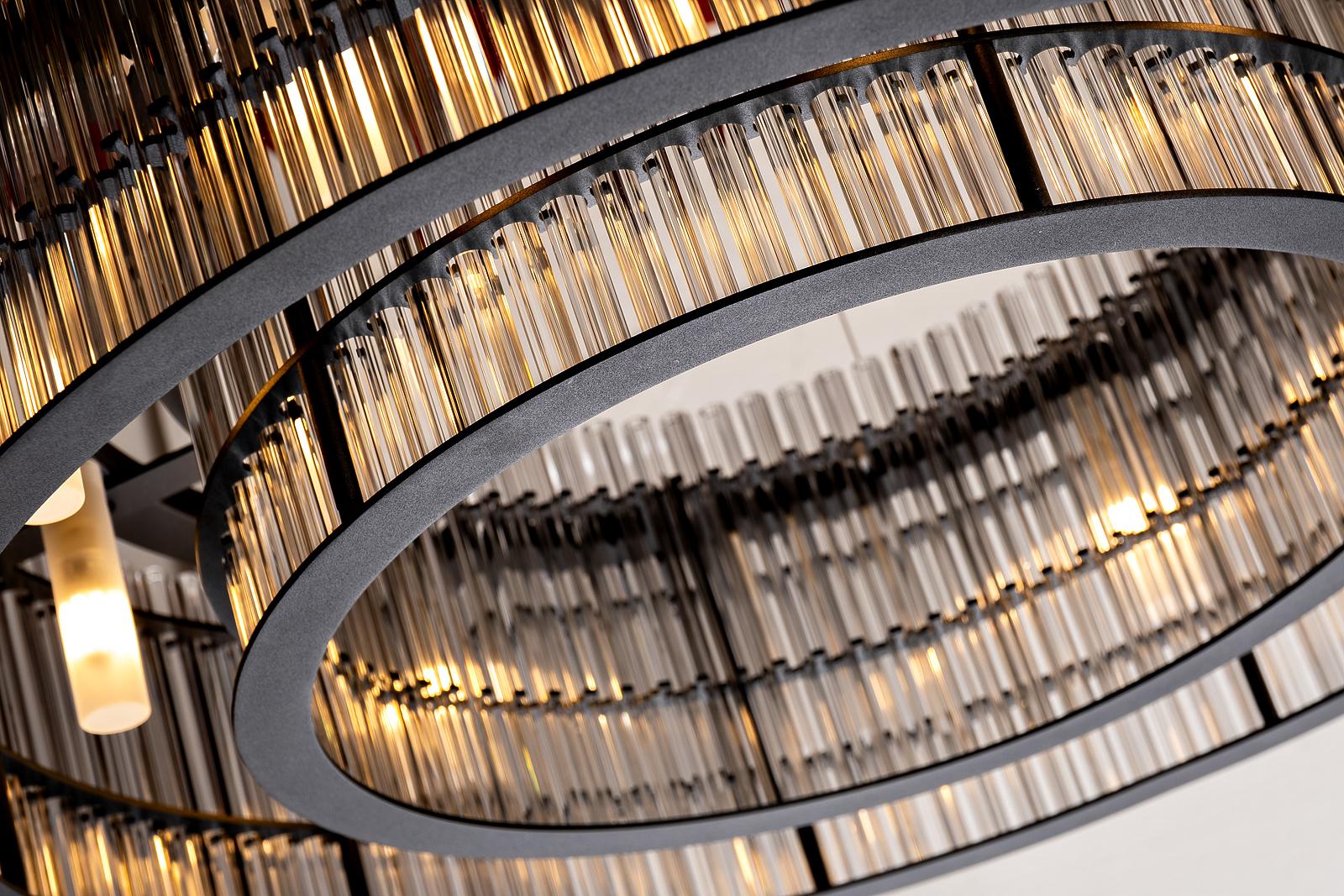 description-full - Лаконичная подвесная люстра эффектно смотрится в любом современном интерьере и качественно освещает пространство комнаты. Классическая форма круга делает ее универсальным решением, но при этом дизайн светильника нельзя назвать простым. Круглая стеклянная люстра сочетает в себе две сферы, выполненные из металла и прозрачного стекла. За счет такого дизайна свет от ламп хорошо рассеивается и заполняет все пространство помещения. Этот дизайнерский потолочный светильник станет одним из главных акцентных элементов гостиной, столовой, холла.