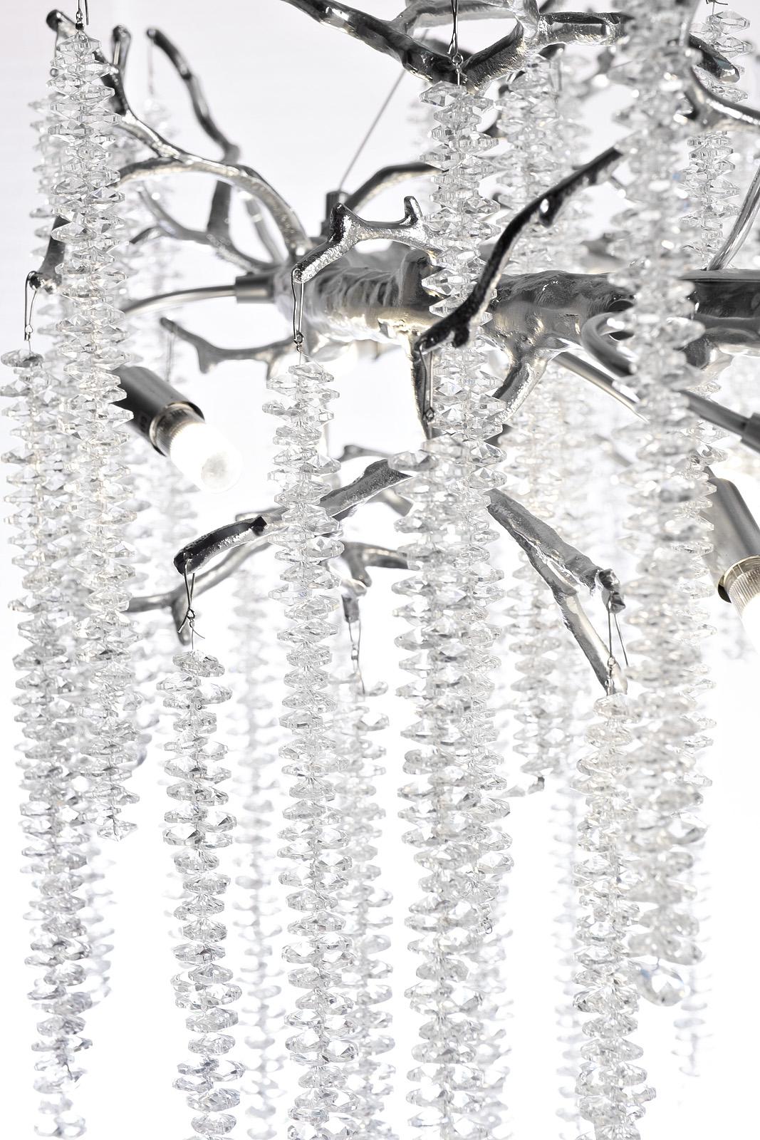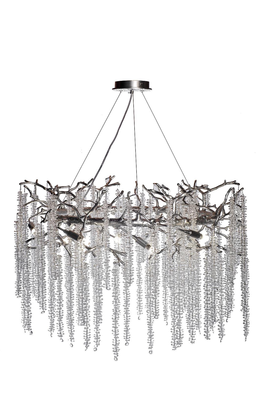 description-full - Красивая подвесная люстра с максимальным градусом декоративности. Воплощение изящества, аристократизма и современных дизайнерских трендов. Это полноценный арт-объект, который сразу обращает на себя внимание благодаря внушительным размерам и оригинальному дизайну. Люстра со стеклянными подвесами идеально впишется в интерьер гостиной, холла, столовой. Сочетание металлического каркаса в виде веток и ниспадающих подвесок из крохотных прозрачных капель делает этот потолочный светильник по-настоящему роскошным украшением пространства. Рекомендуемая площадь освещения 24-30 м2.