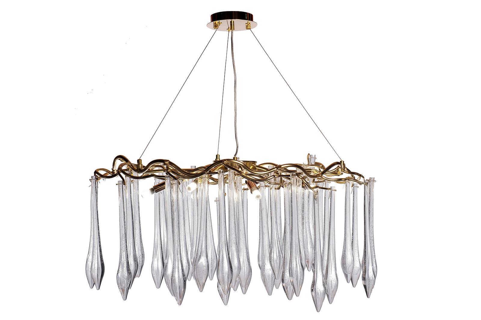 description-full - Круглая люстра «Капли» сочетает в себе легкость стекла и аристократизм металла цвета шампань. Благодаря оригинальным подвесам она эффектно смотрится в интерьере гостиной и органично впишется в обстановку современной спальни. Экстравагантный дизайн люстры из стекла придется по вкусу людям, которые предпочитают выразительные вещи. Отлично справляясь со своими основными функциями, этот потолочный светильник добавляет интерьеру элегантной роскоши. Люстра «Капли» легко и непринужденно вписывается в любую концепцию современного дизайна.