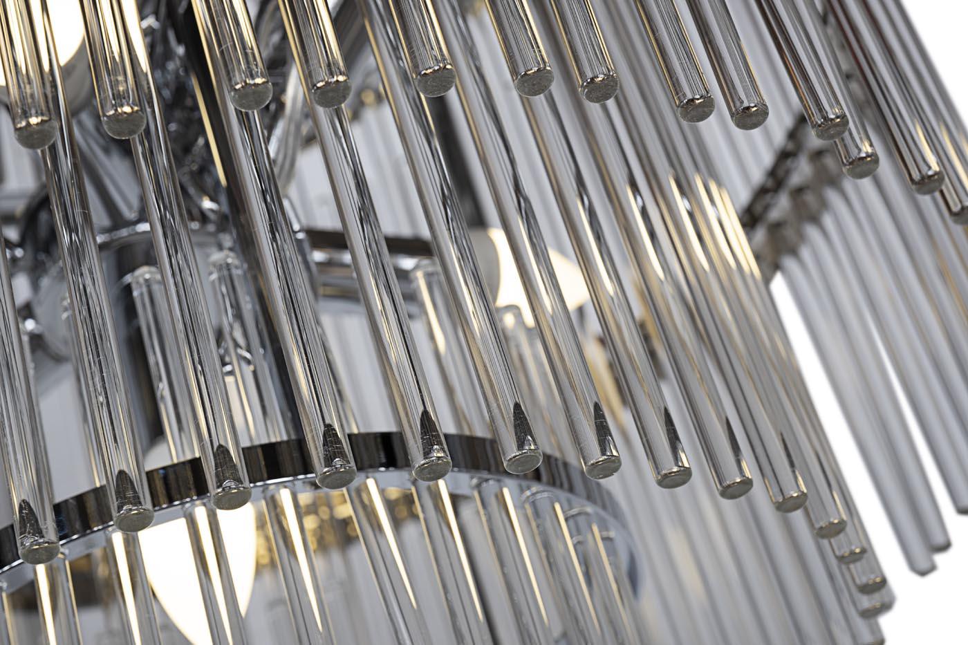description-full - Представленная модель люстры поражает своей помпезностью, призванная увенчивать роскошные залы и гостиные. Стеклянные трубки, собранные в окружности разных диаметров, создают головокружительный эффект. Обтекаемая форма и прозрачный материал, в то же время, делают ее изысканным изделием тончайшей работы. Такая люстра возглавит потолочное пространство над обеденной или зоной отдыха. В сочетании с бра из этой же серии можно создать стильную композицию для завершения облика помещения. Рекомендуемая площадь освещения 14-17 м2.