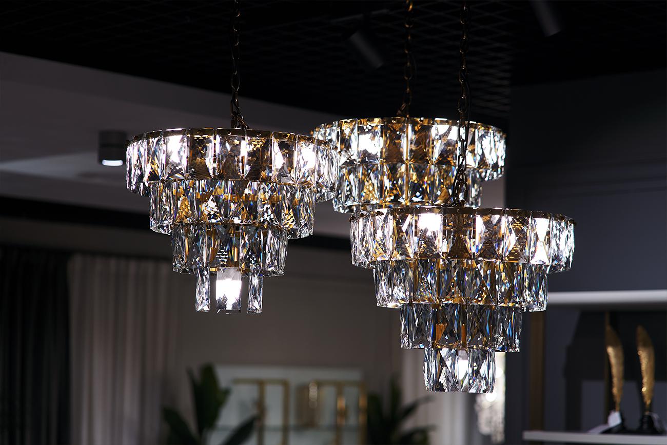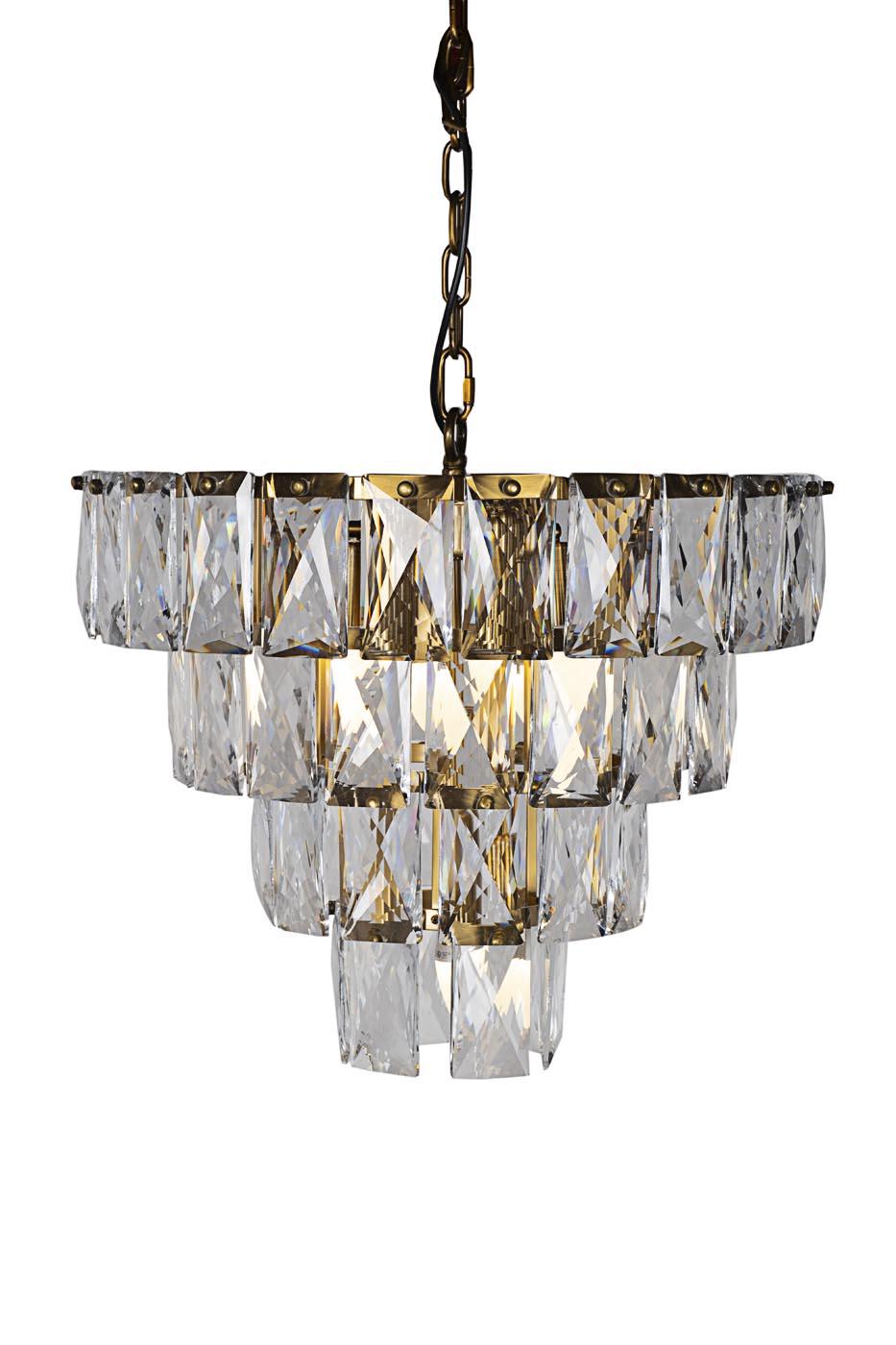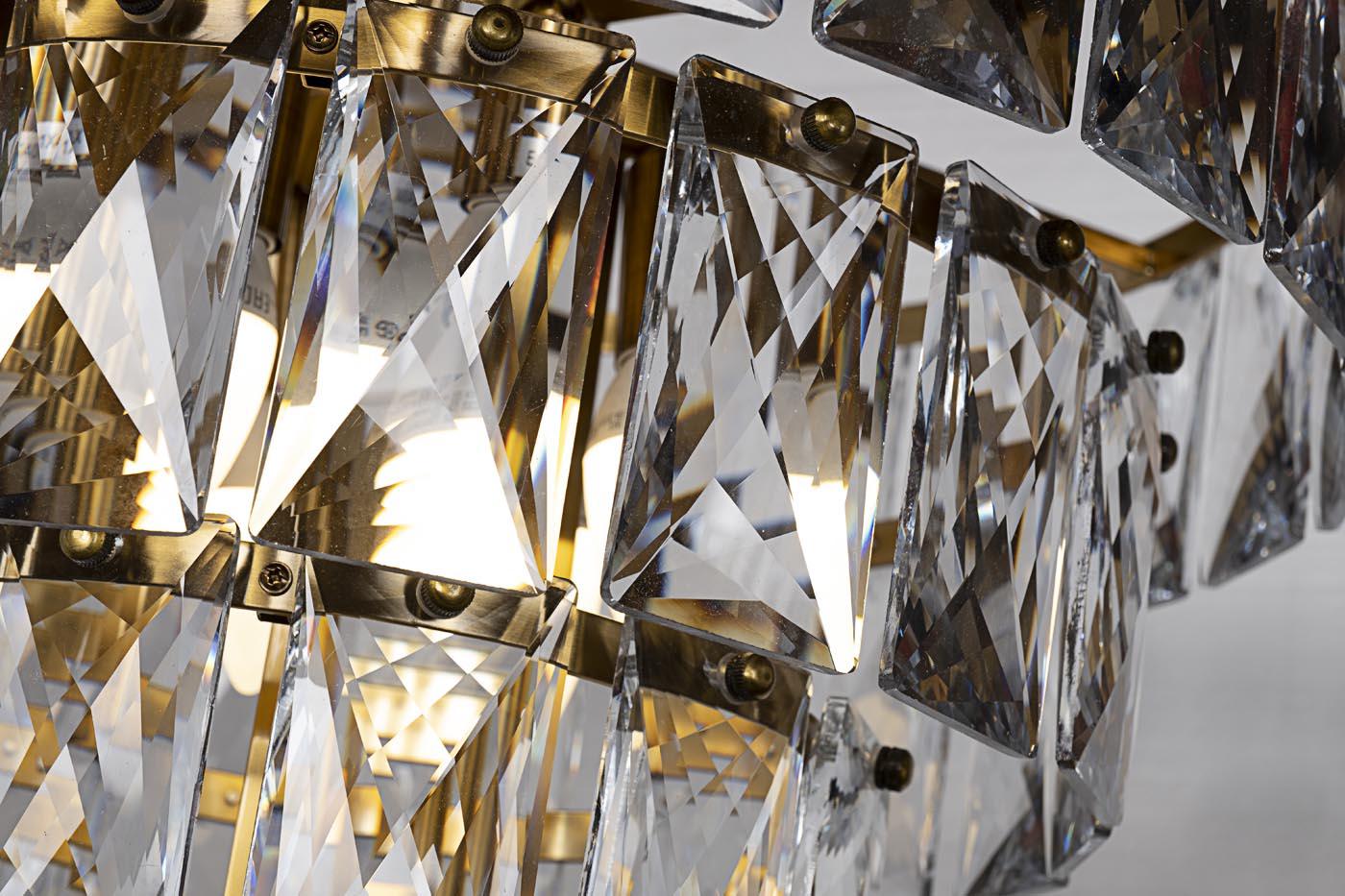description-full - Уют современного интерьера напрямую зависит от освещения в помещении. Золотая люстра с кристаллами однозначно произведет на хозяев и гостей впечатление. Изделие состоит из четырех ярусов, которые лаконично убывают в диаметре к низу. Каждый ярус выполнен из отдельных стеклянных кристаллов, которые крепятся на металлический обод латунного цвета. Оригинальный и неповторимый дизайн данной люстры станет беспроигрышным вариантом для завершения интерьера спальни, гостиной или холла. Создавайте свой неповторимый интерьер вместе с Garda Decor. Рекомендуемая площадь освещения 14-18 м2.