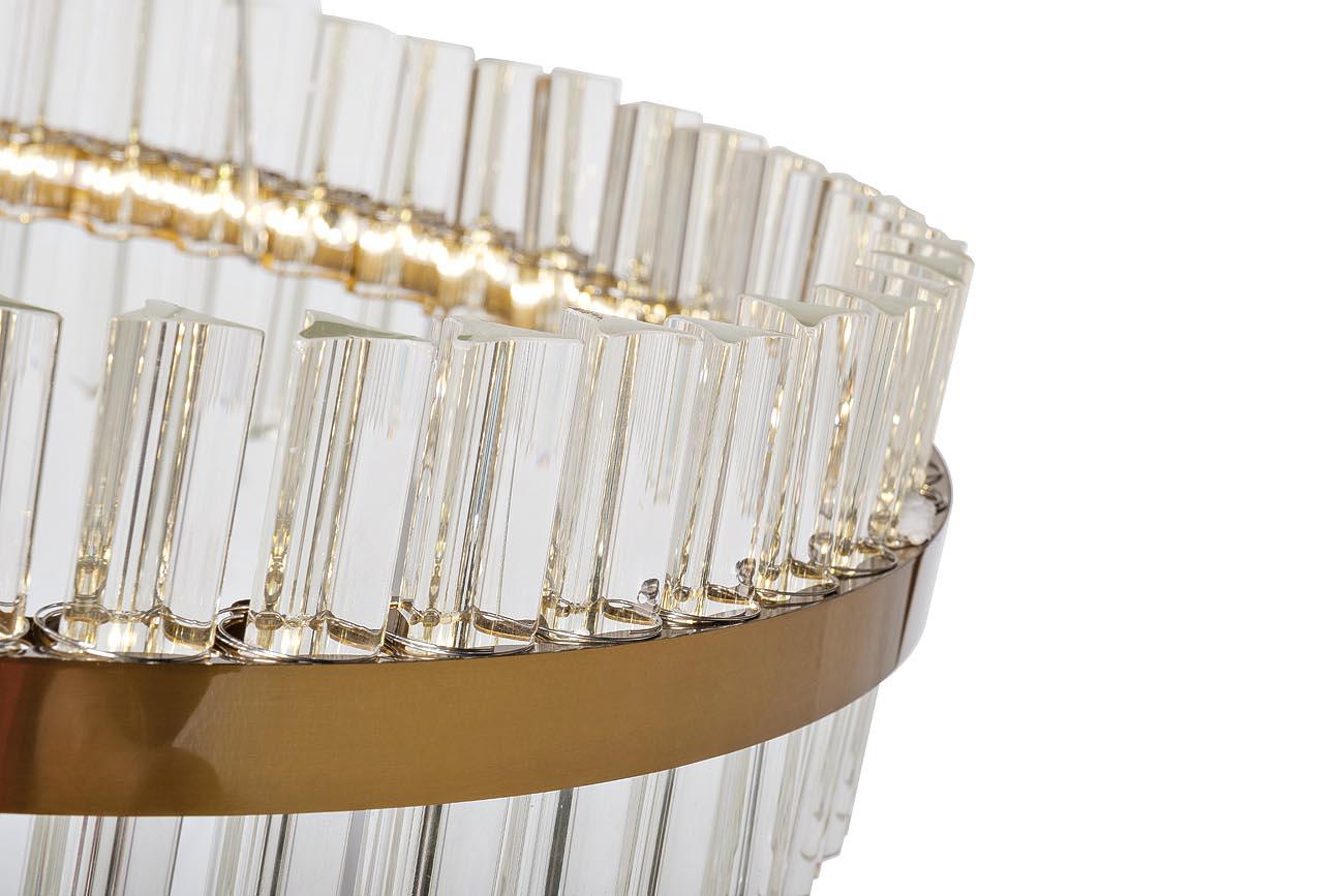 При создании данного современного потолочного светильника дизайнеры отказались от пышного и вычурного декора, получив стильное решение. По диаметру более полуметра расположены стеклянные палочки, в разрезе представляющие собой треугольную звезду. Объедине...