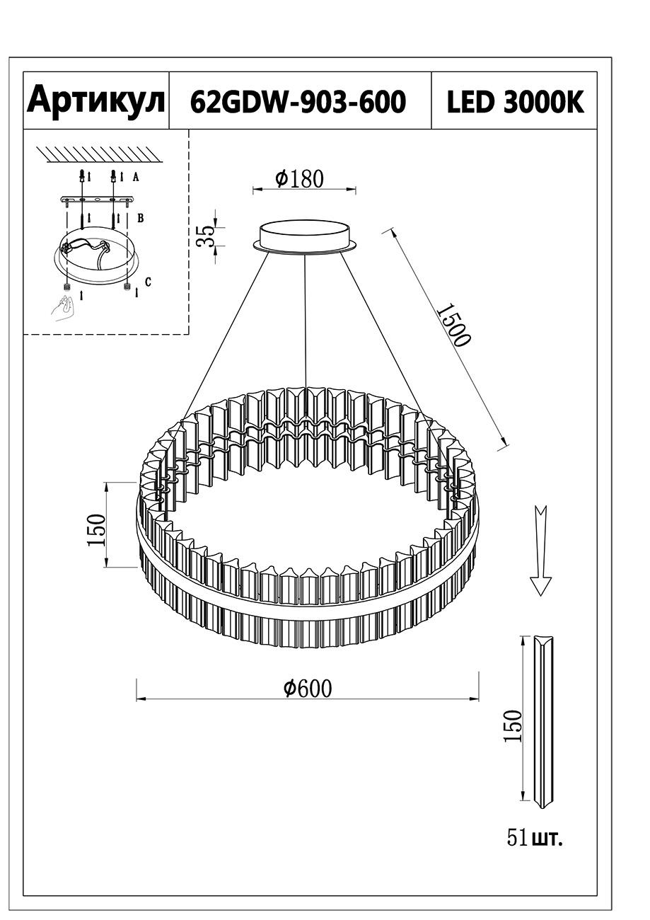 Потолочный светильник Garda Decor 62GDW-903-600 Люстра Альпина (Alpina) d60см h15см арт. 62GDW-903-600