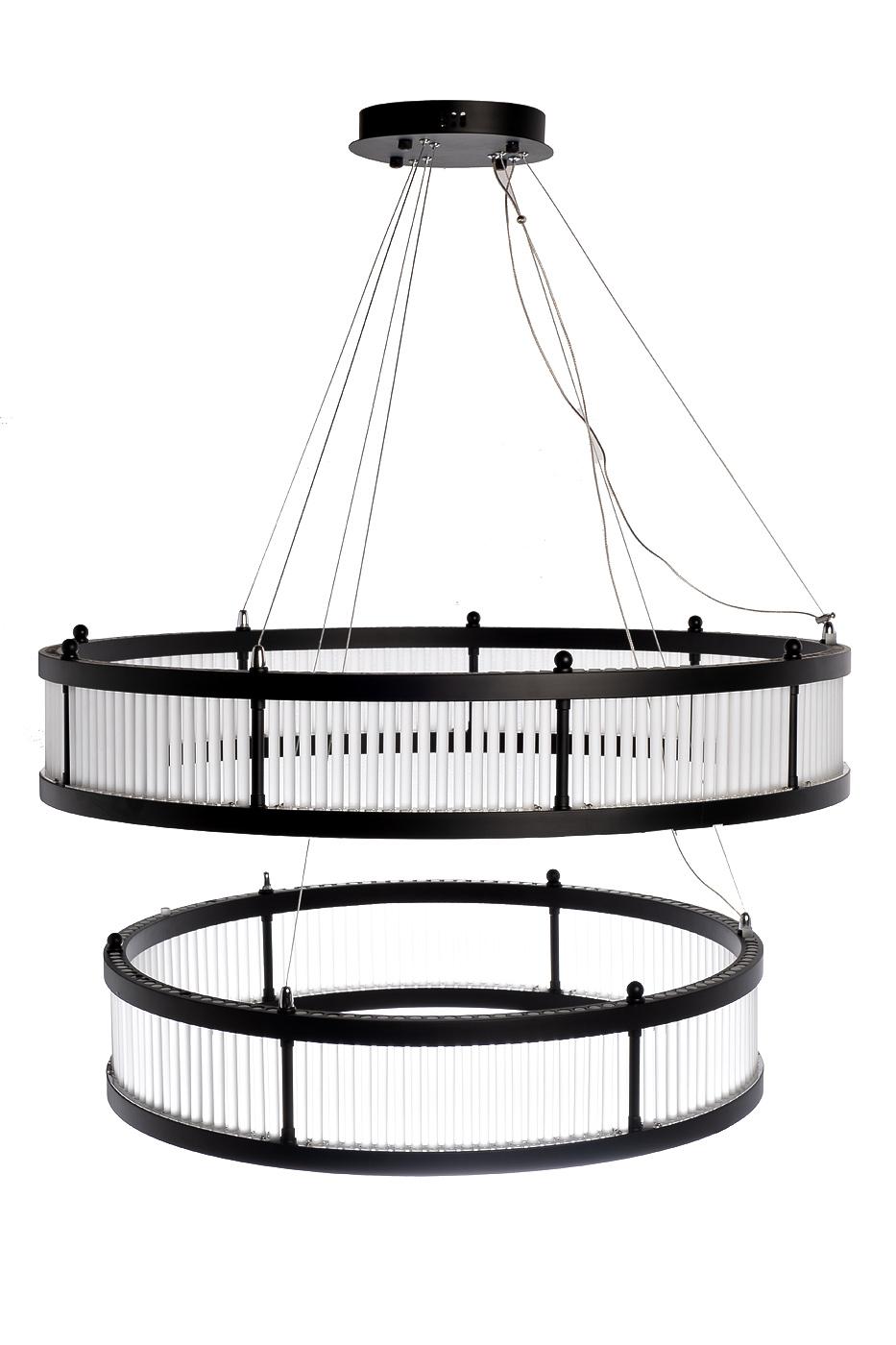 description-full - Представьте себе эту роскошную двухуровневую круглую люстру Анкона двойная (Ancona Double) в центре вашей гостиной или столовой. Ее изящный дизайн и яркое свечение преобразят любое пространство, создавая атмосферу элегантности и комфорта. Двухуровневая конструкция – два кольца из матового стекла, подвешенные друг под другом, создают объемный и эффектный дизайн. Черный металлический каркас контрастирует с матовым стеклом, придавая люстре современный и стильный вид. Светодиодная лента обеспечивает яркое и равномерное освещение. Вы можете отрегулировать высоту подвеса люстры в соответствии с особенностями вашего помещения. Эта люстра станет настоящим украшением вашего интерьера и подчеркнет ваш безупречный вкус.