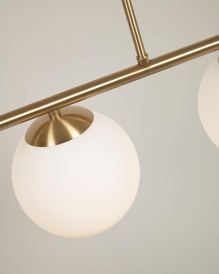 Современный дизайн и геометрические формы прекрасно сочетаются с тремя сферическими плафонами Mahala из матового стекла и деталями из стали с латунной отделкой. Идеальный способ стильно осветить любую комнату.