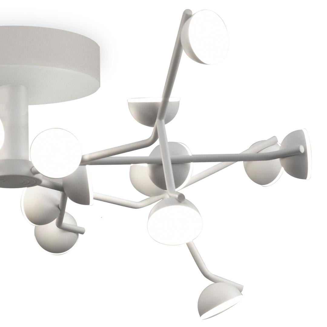 Светильник Adn, выполненный из металла, с анархическим распределением точек освещения, соответствует структуре ДНК, с художественным и визуальным балансом. В качестве основной характеристики, его рамы, декорированные белой эпоксидной смолой, дают возможность замены светодиодных точек, если это необходимо.