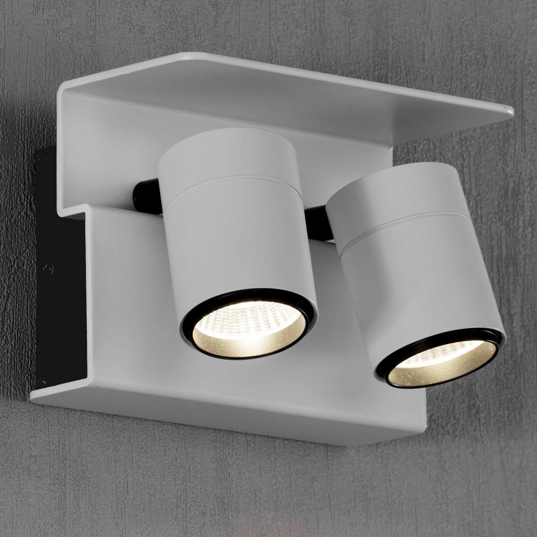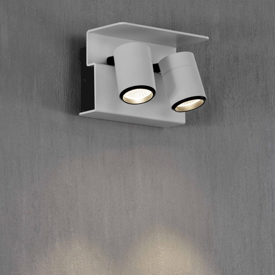 Настенный светодиодный светильник Boracay с двумя поворотными плафонами, выполненными из алюминия. Доступен в белом цвете.