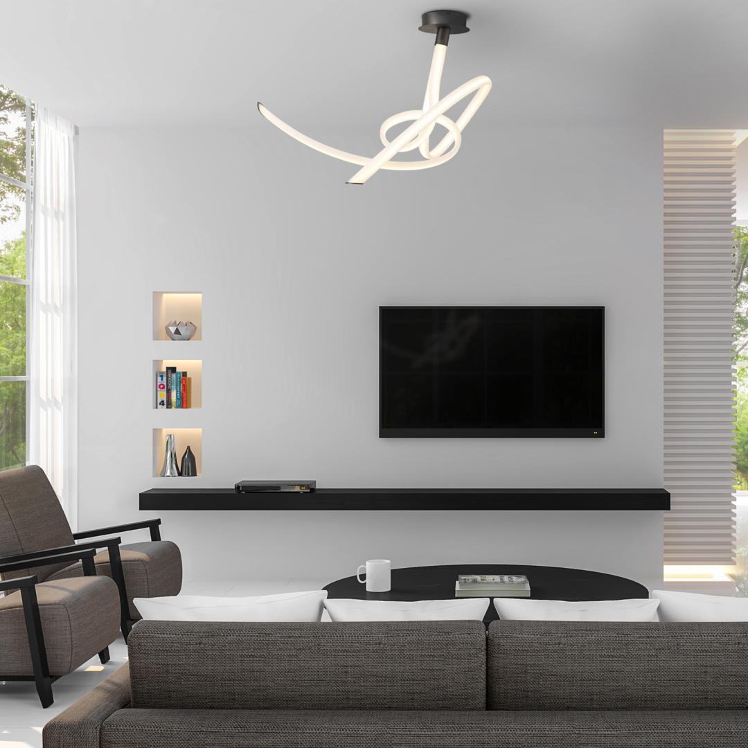 Потолочный светильник Armonia, выполненный через изогнутую трехмерную фантазию и минималистичные линии, нарисованные в пространство. Его двухслойное отверстие скрыто в овальном термоизогнутом плафоне из поликарбоната. Доступен в белом цвете с хромовой или титановой основой. Лампы теплого света входят в комплект. Модель с титановой основой - диммируемая.