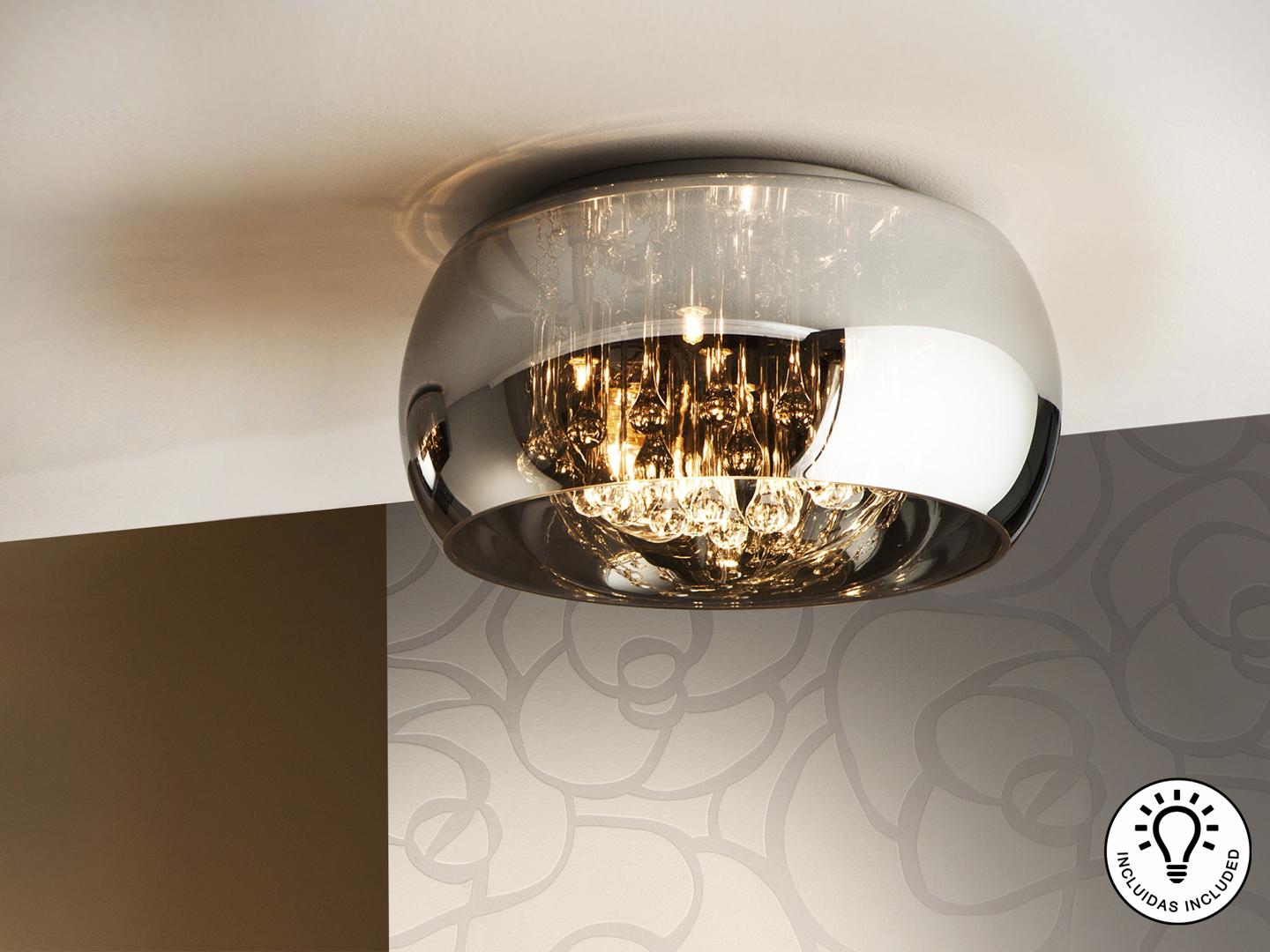Потолочный светильник из металла с покрытием "хром", плафон из зеркального стекла с подвесками внутри из стекла подобного муранскому.