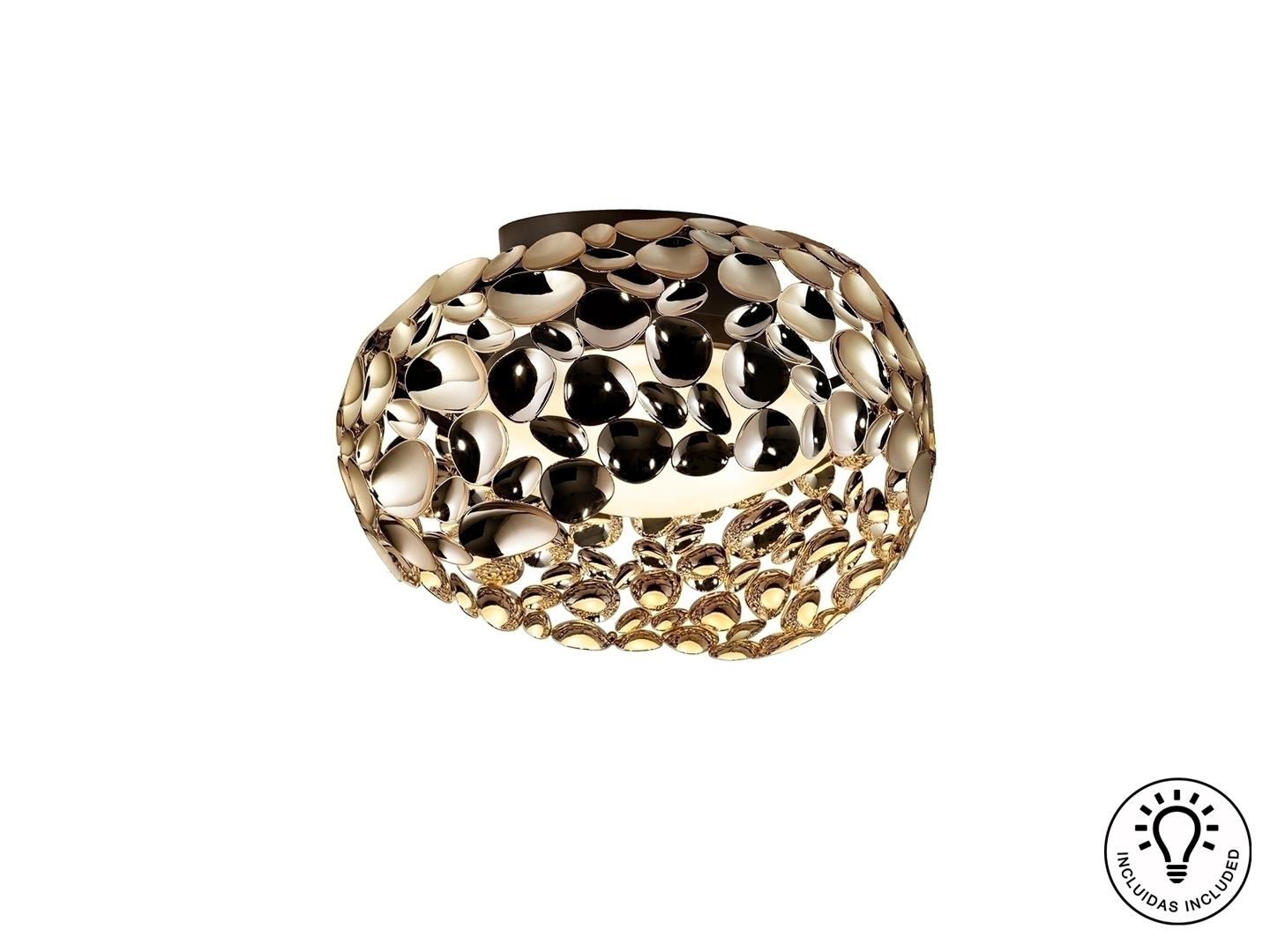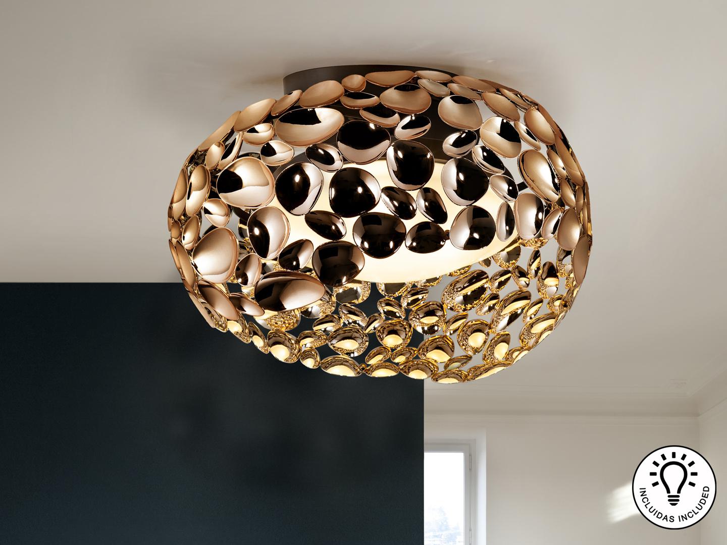 Потолочный светильник с 5 лампами, из металла с покрытием "розовое золото" и с тёмно-коричневым покрытием, акриловый рассеиватель внутри. Включает 5 светодиодов G9 мощностью 6 Вт.