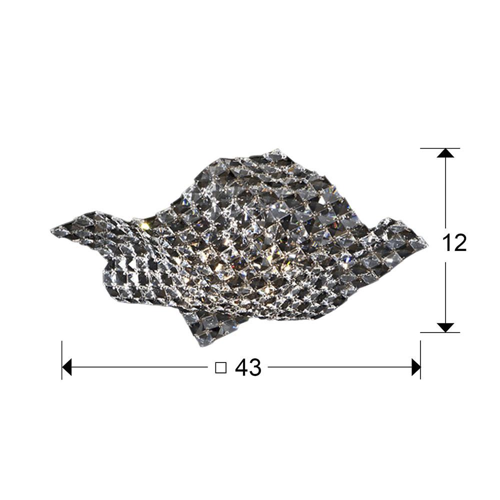 Потолочный светильник из хромированного металла, плафон из скреплённых между собой кристаллов прозрачного гранёного стекла K9 и кристаллов дымчатого цвета, Включает 4 светодиода G9 мощностью 6 Вт.