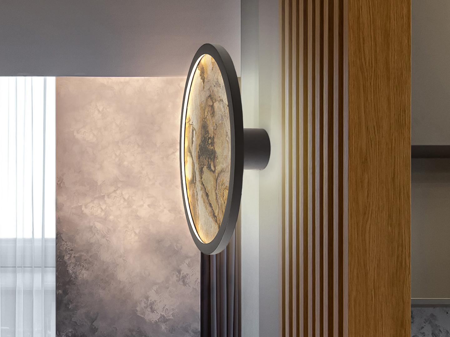 Круглый настенный светильник или потолочный светильник. Изготовлен из металла с черной отделкой и многоцветным сланцем, с опаловым акриловым кольцом. Светодиодный светильник 25 Вт, 334 лм, смена цвета CCT, 3000/4000/6000 К. Выбор цветовой температуры CCT осуществляется с настенного переключателя последовательными нажатиями клавиш. Включена функция памяти.